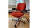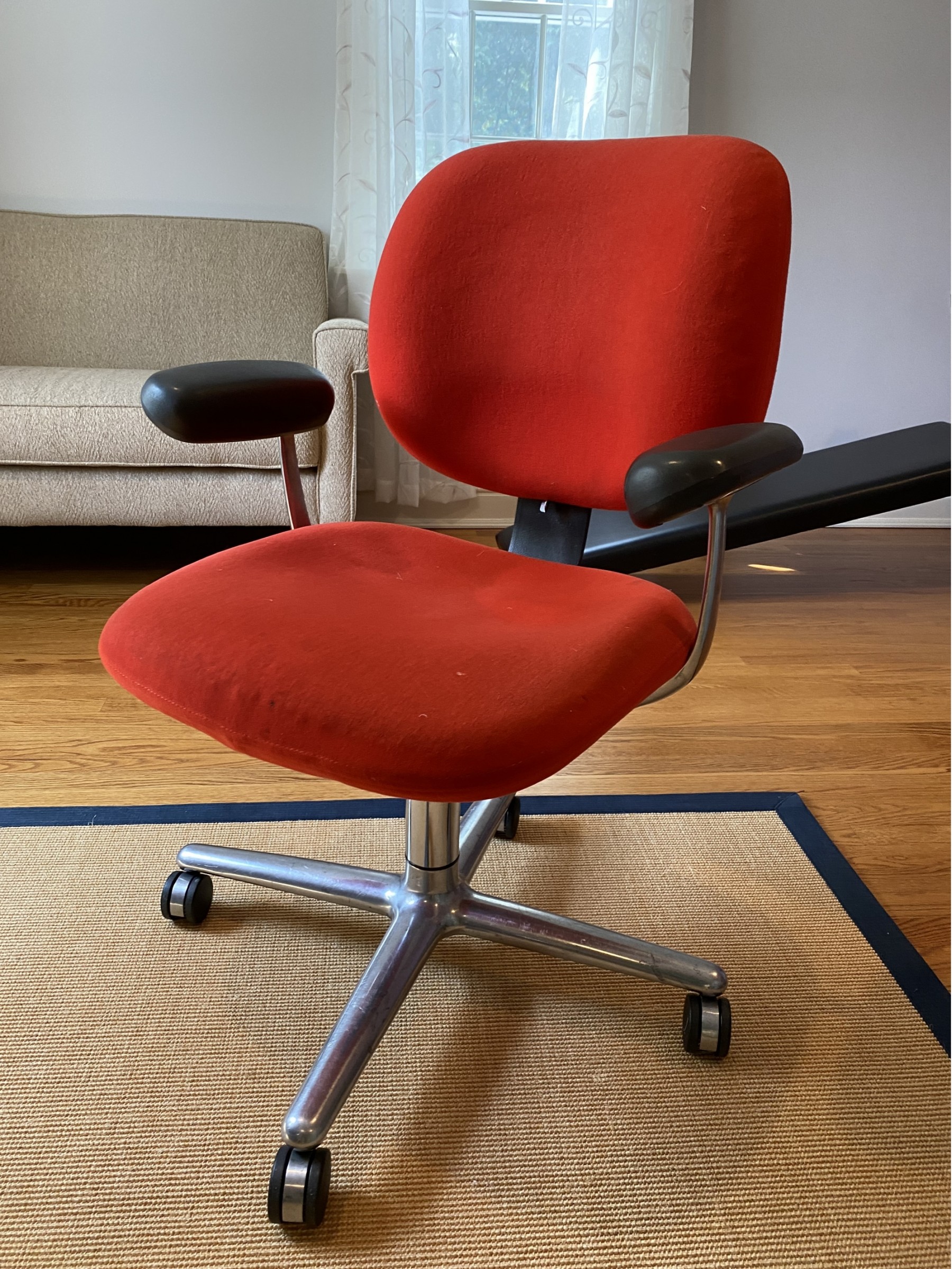Soft, microfiber and chrome finish chair with adjustable height and padded armrests. Overall nice condition with light surface wear throughout. See all photos for details.