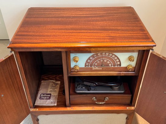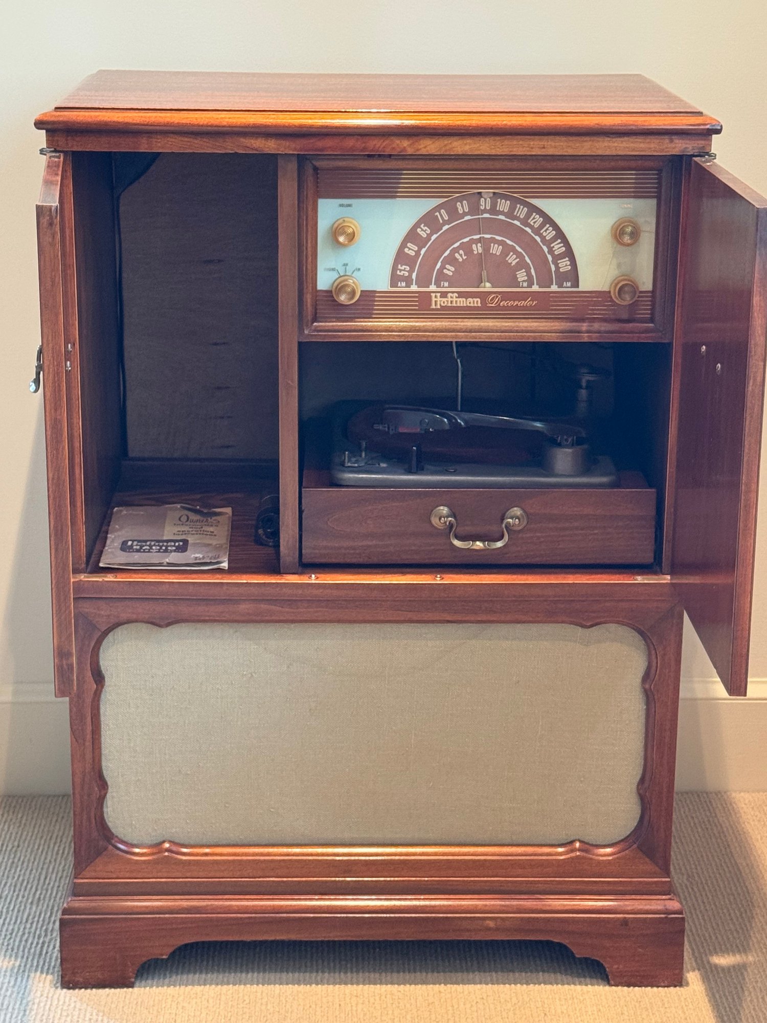 Incredibly charming vintage radio and turntable.