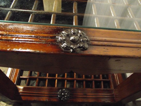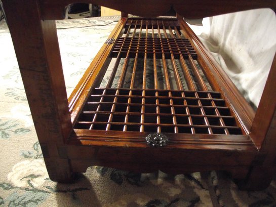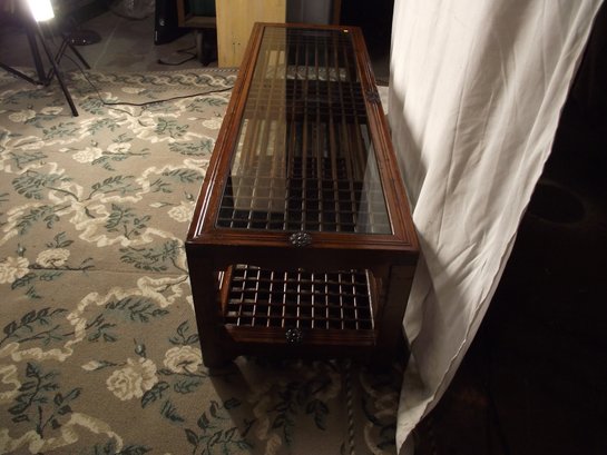 VINTAGE INSPIRED GLASS TOP COFFEE TABLE. SEE PHOTOS FOR CONDITION.