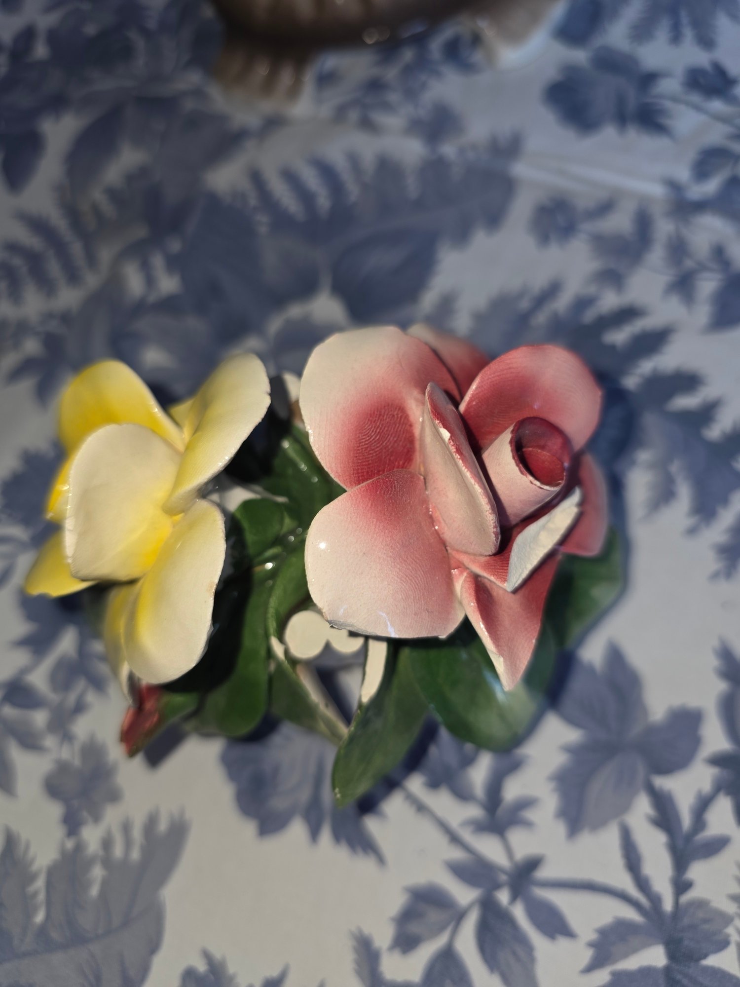 Vintage Italian Hand Painted Porcelain Nuova Capodimonte Floral Figurine. Marked. *Note Damage