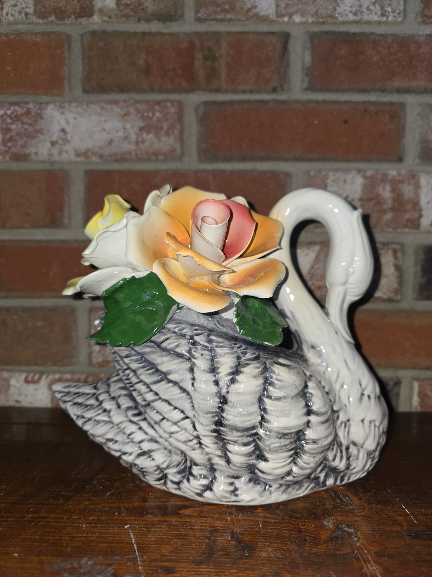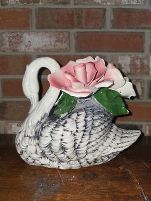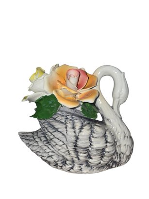 Vintage Italian Hand Painted Porcelain Capodimonte Swan. Marked with "N" symbol. New with original box and tag.