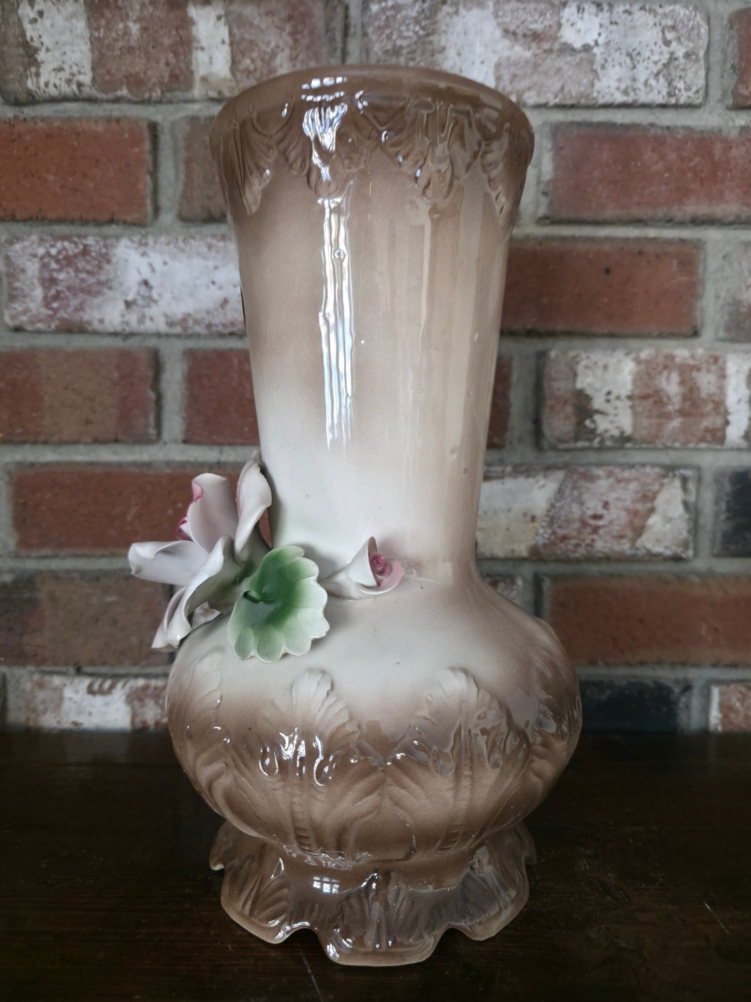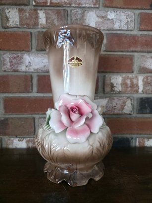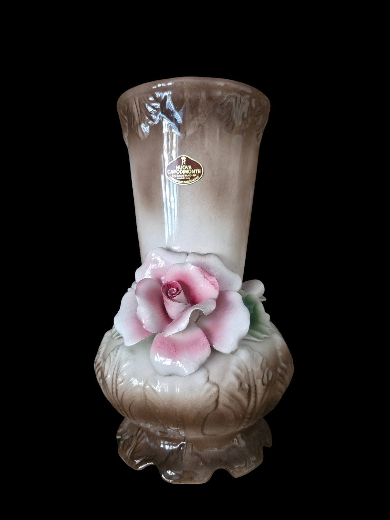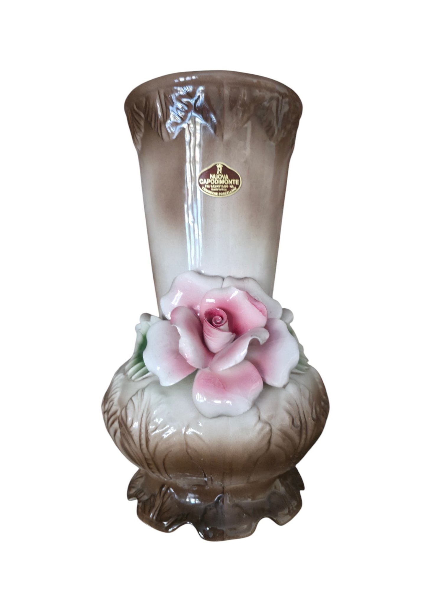 Vintage Italian Hand Painted Porcelain Nuova Capodimonte 2 Tone Vase. Sticker. Great Condition! Like New. No chips noted.