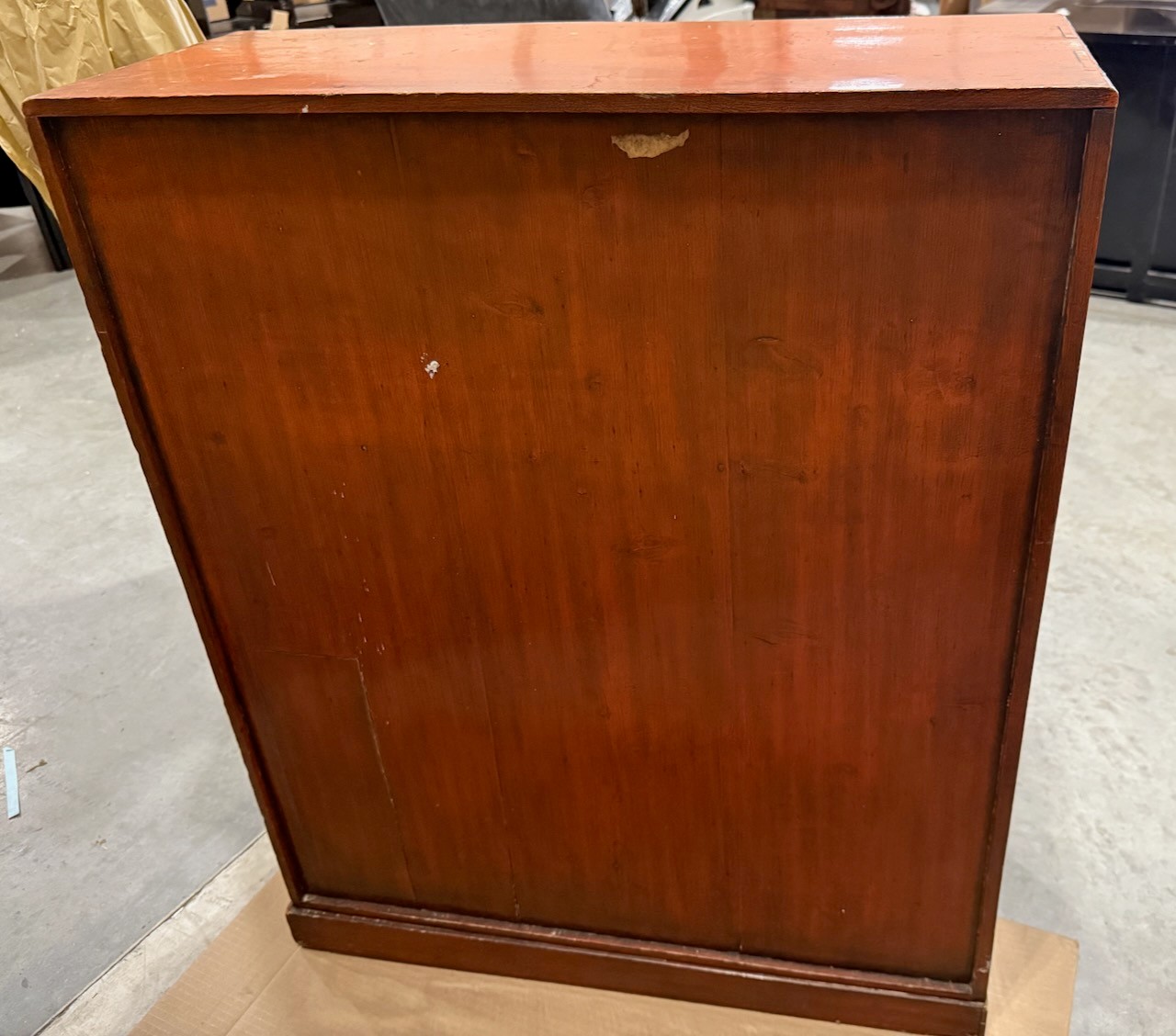 Reddish/orange color. 27.75" x 10.75" x 35" H