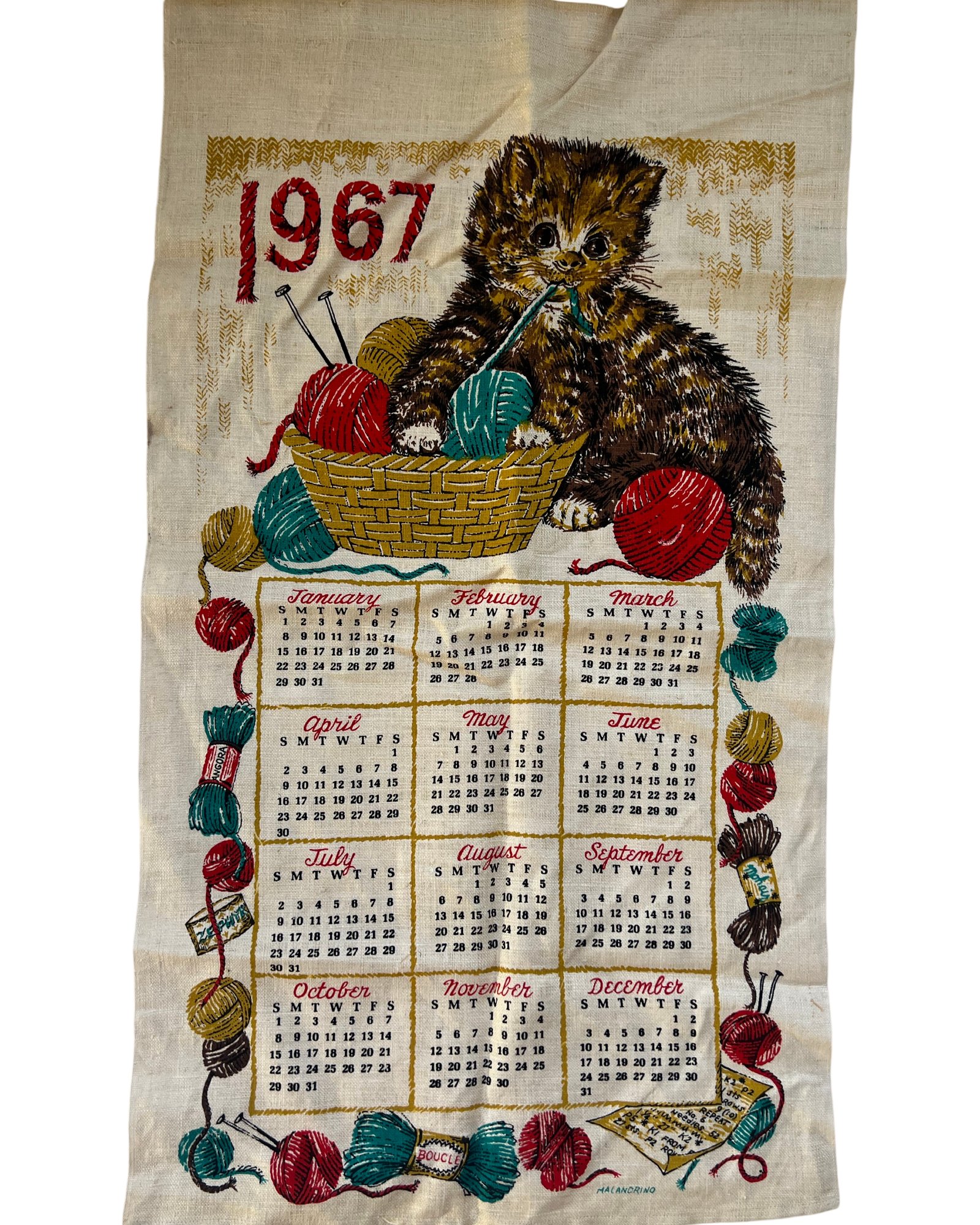 malandrino - vintage 1967 Linen calendar towel