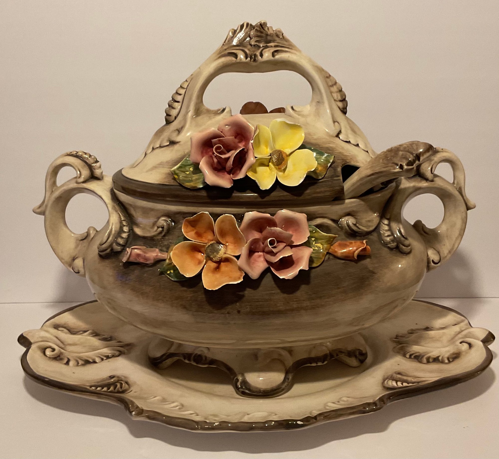 Vintage Large Capodimonte Soup Tureen, Tray & Ladle.