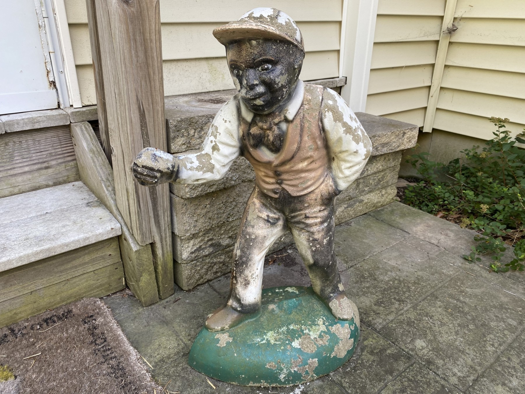 cast concrete. needs repainting. base 15" 27" tall