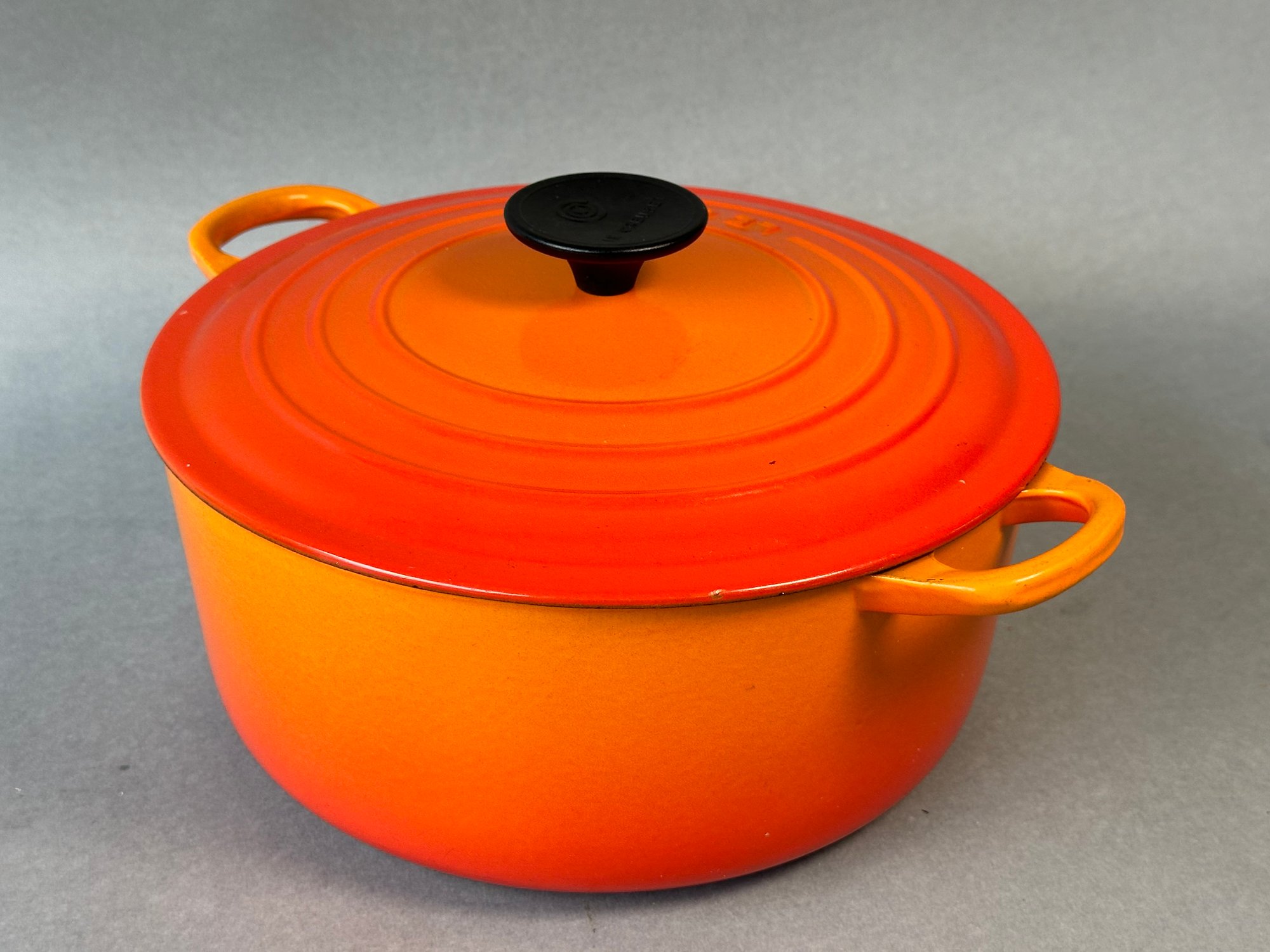 Vintage Le Creuset Enameled Cast Iron Flame Orange Number 24 Dutch Oven