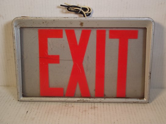 VINTAGE LIGHT UP METAL EXIT SIGN. SEE PHOTOS FOR CONDITION.