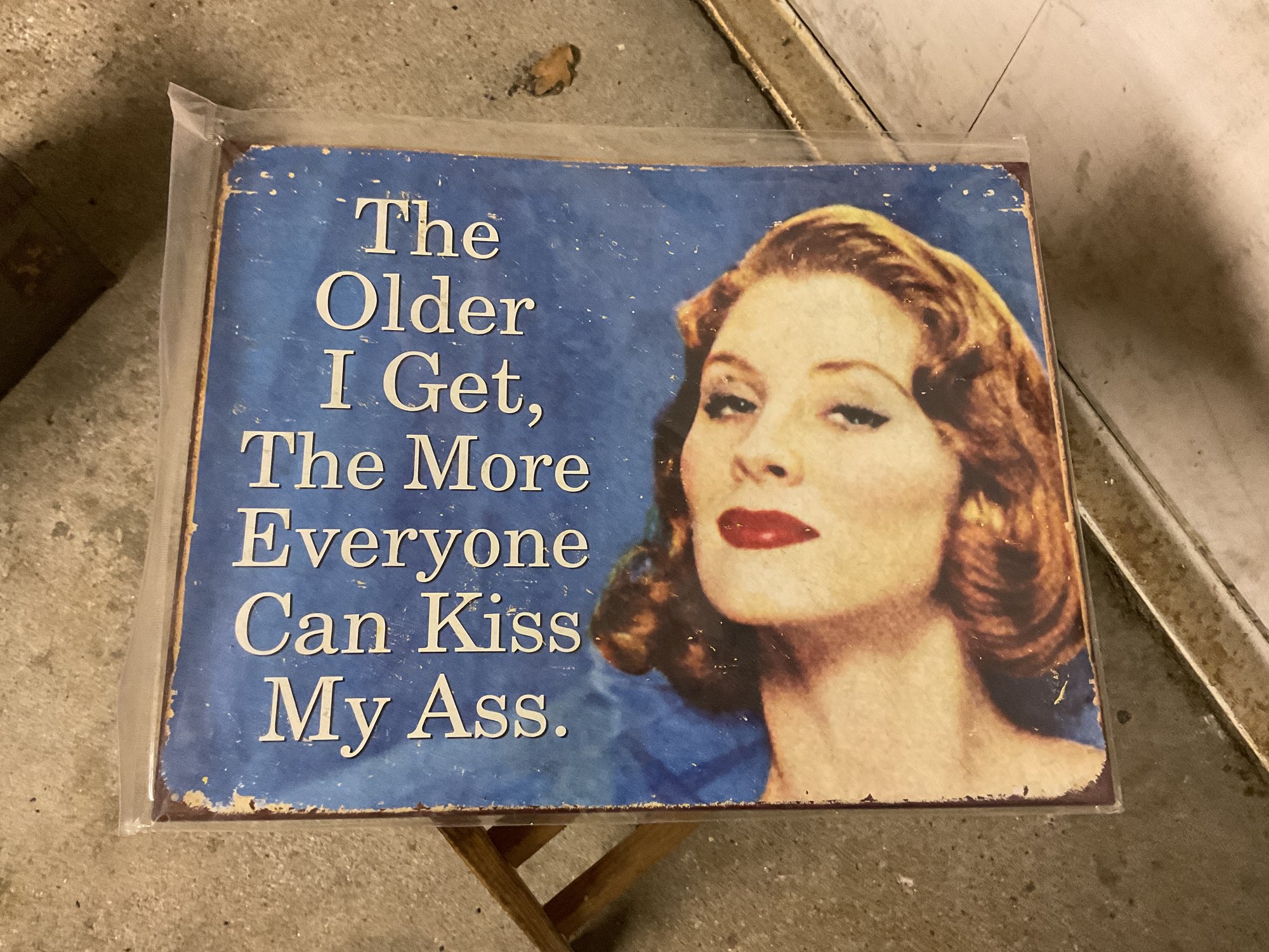 New and unused vintage look metal sign. Excellent unused condition in original plastic cover.