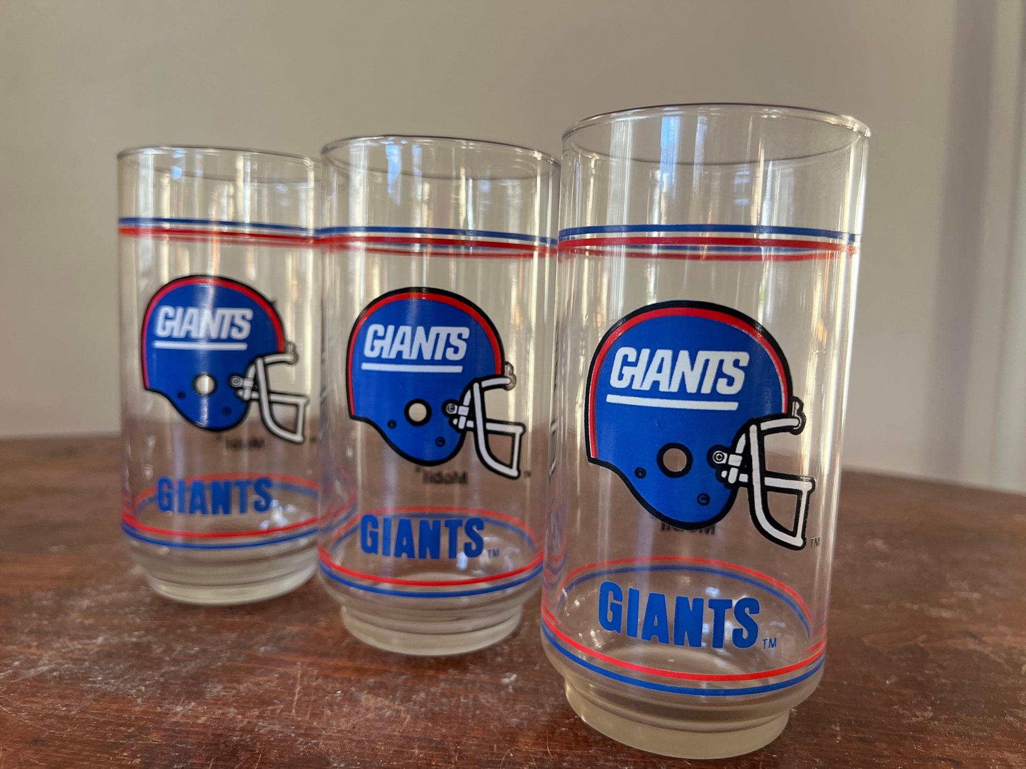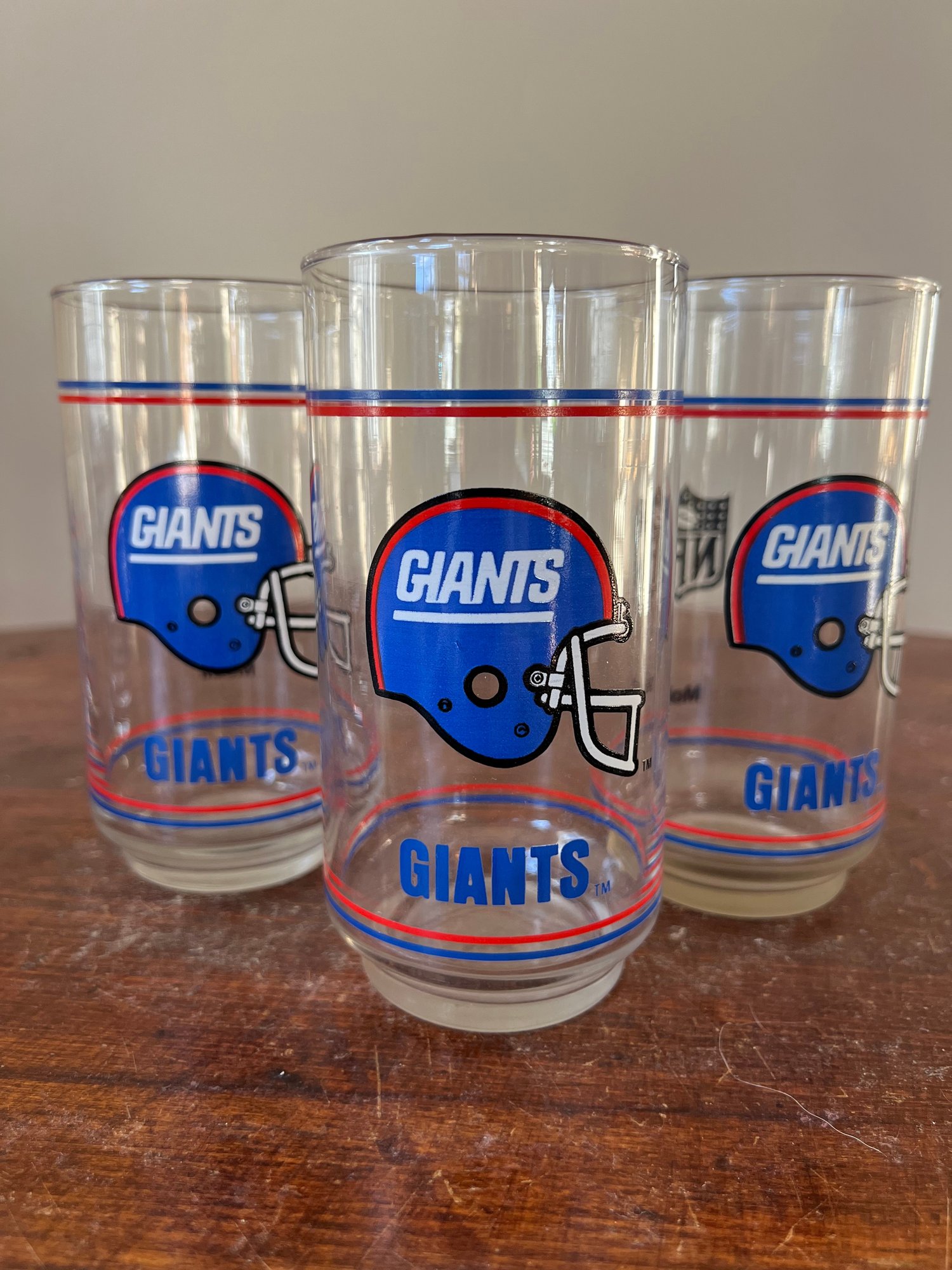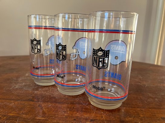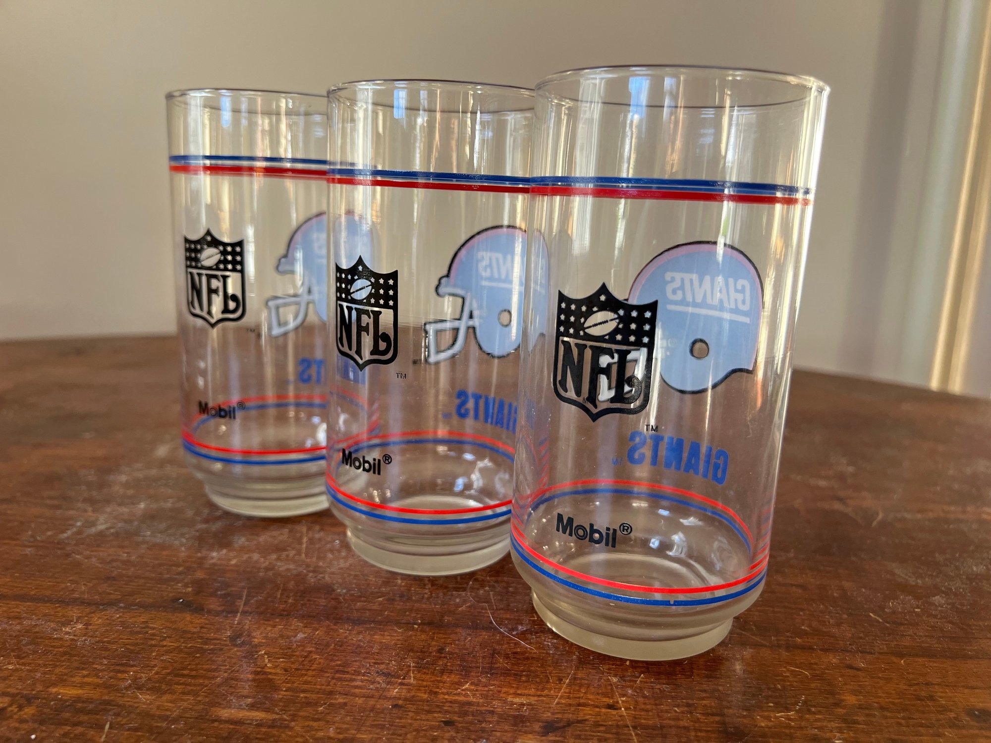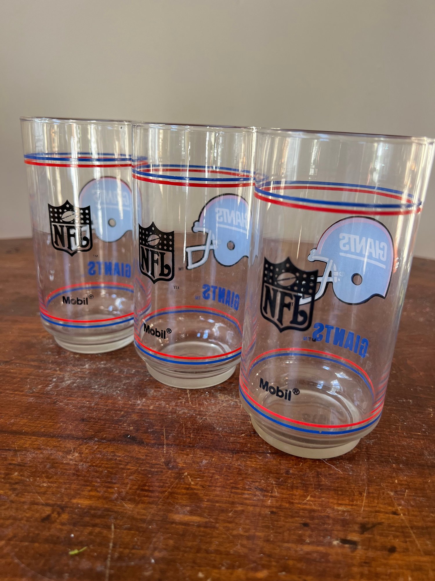This listing features a set of three vintage Mobil “Giants” 16 oz drinking glasses, a great nostalgic find for collectors of gas station memorabilia, sports-themed promotions, or mid-century advertising items.