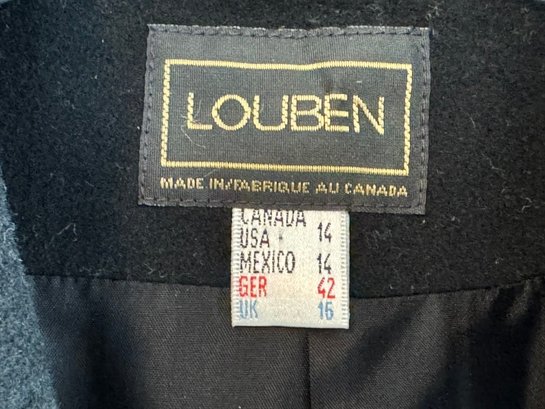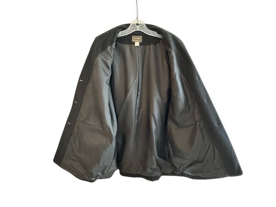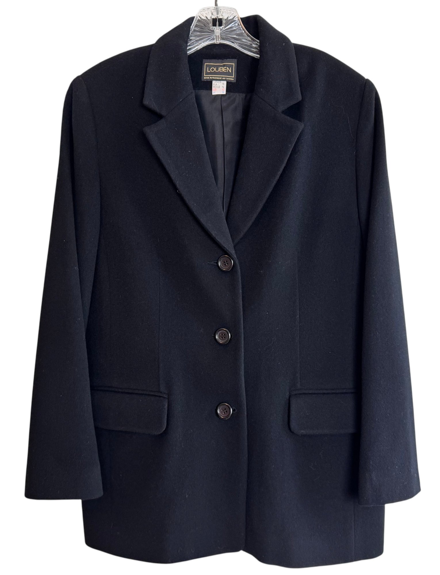 Fully lined, tagged size 14, made in Canada. No fabric listed, but feels like cashmere or cashmere blend.
