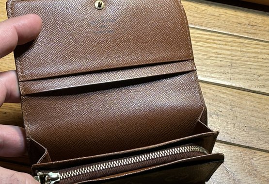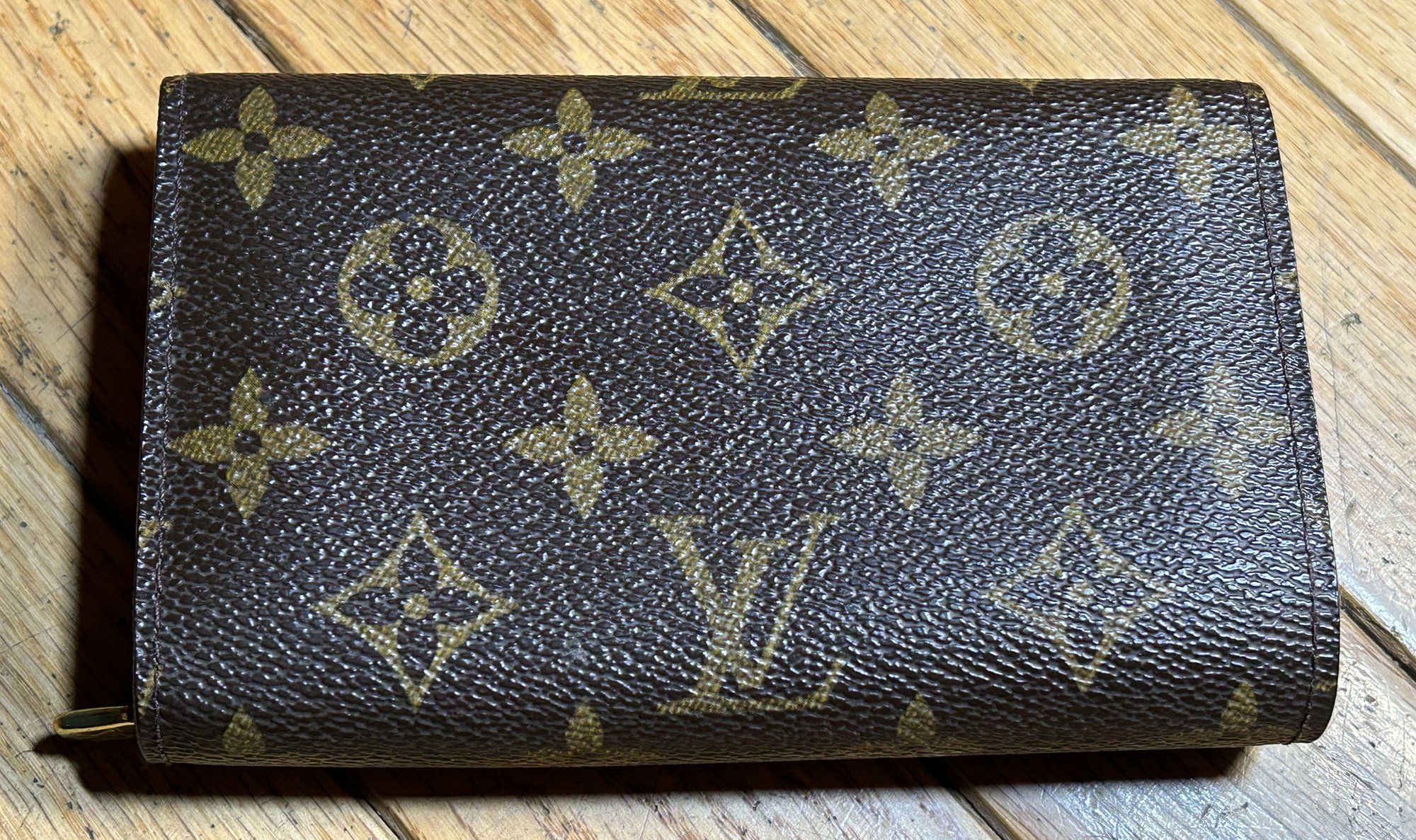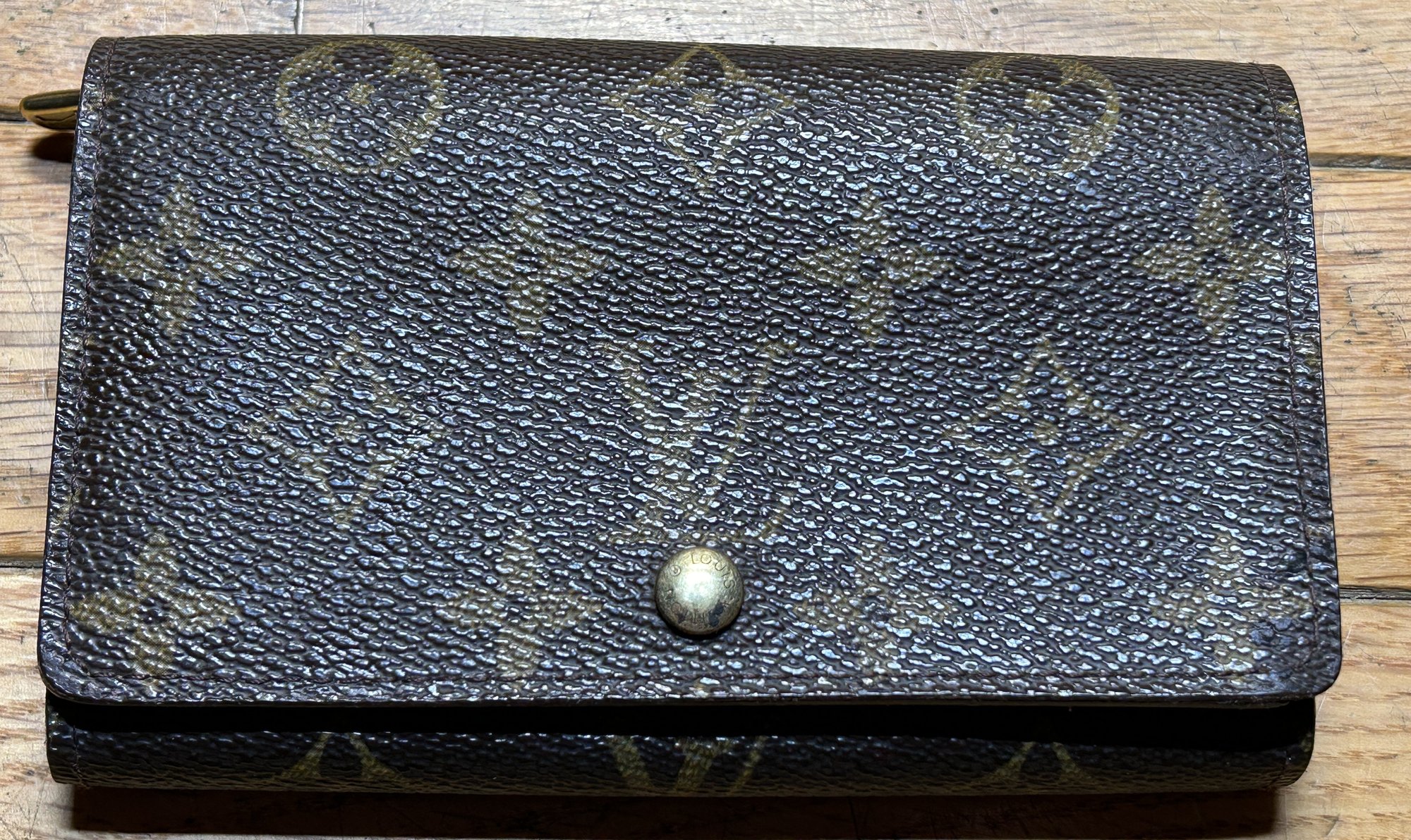 A striking example from luxury designer LOUIS VUITTON, the elegant 'Port-Monnaie Tresor' bifold pebbled leather wallet with iconic LV monogram design. It is in very good condition throughout, well cared for and quite clean. Originally, it sold for well into the hundreds, but we are offering it for $1 open with NO RESERVE.
