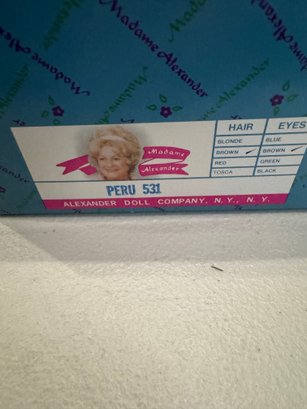 Vintage Madame Alexander Doll Peru 531 NWT & Original Box