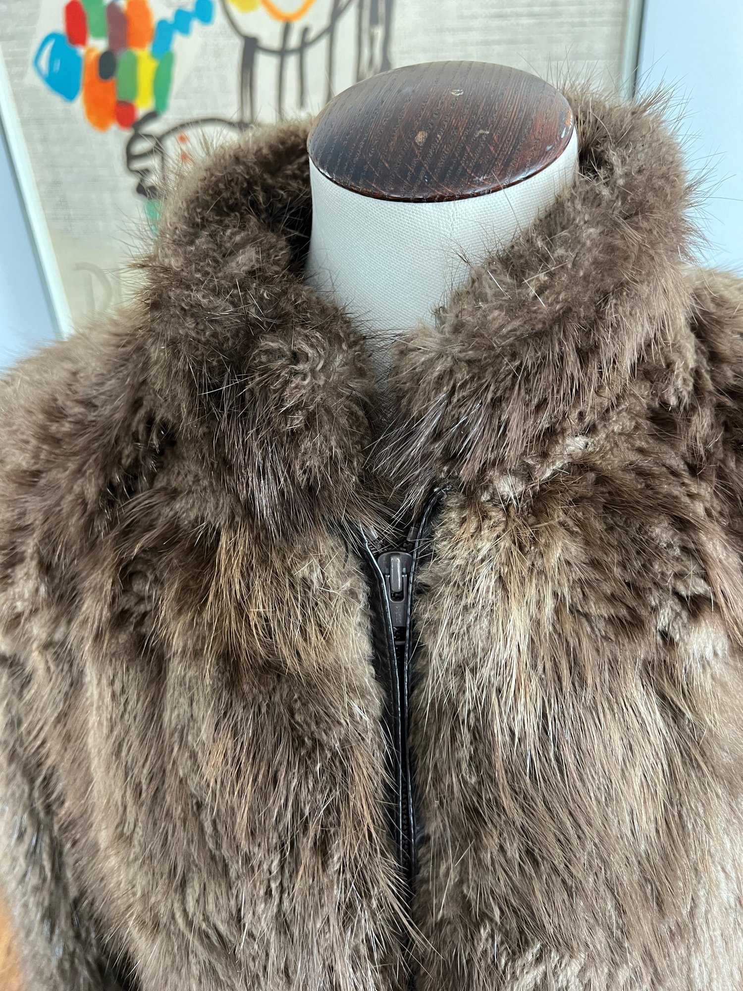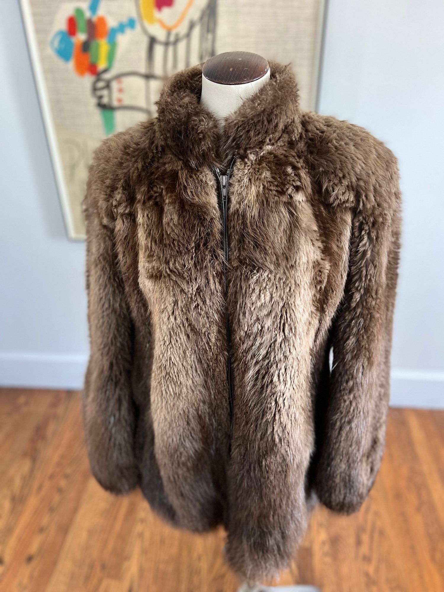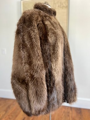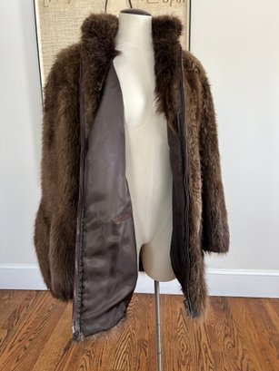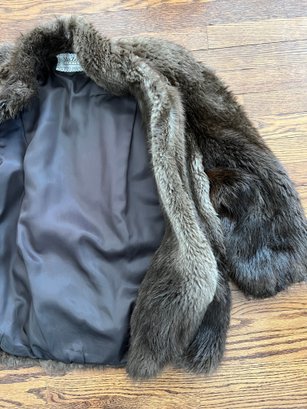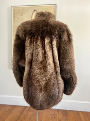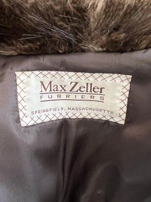 The specific type of fur on this coat is unknown and is not labeled; however, the coat showcases excellent craftsmanship, rich texture, and classic mid-century styling consistent with Max Zeller’s work.