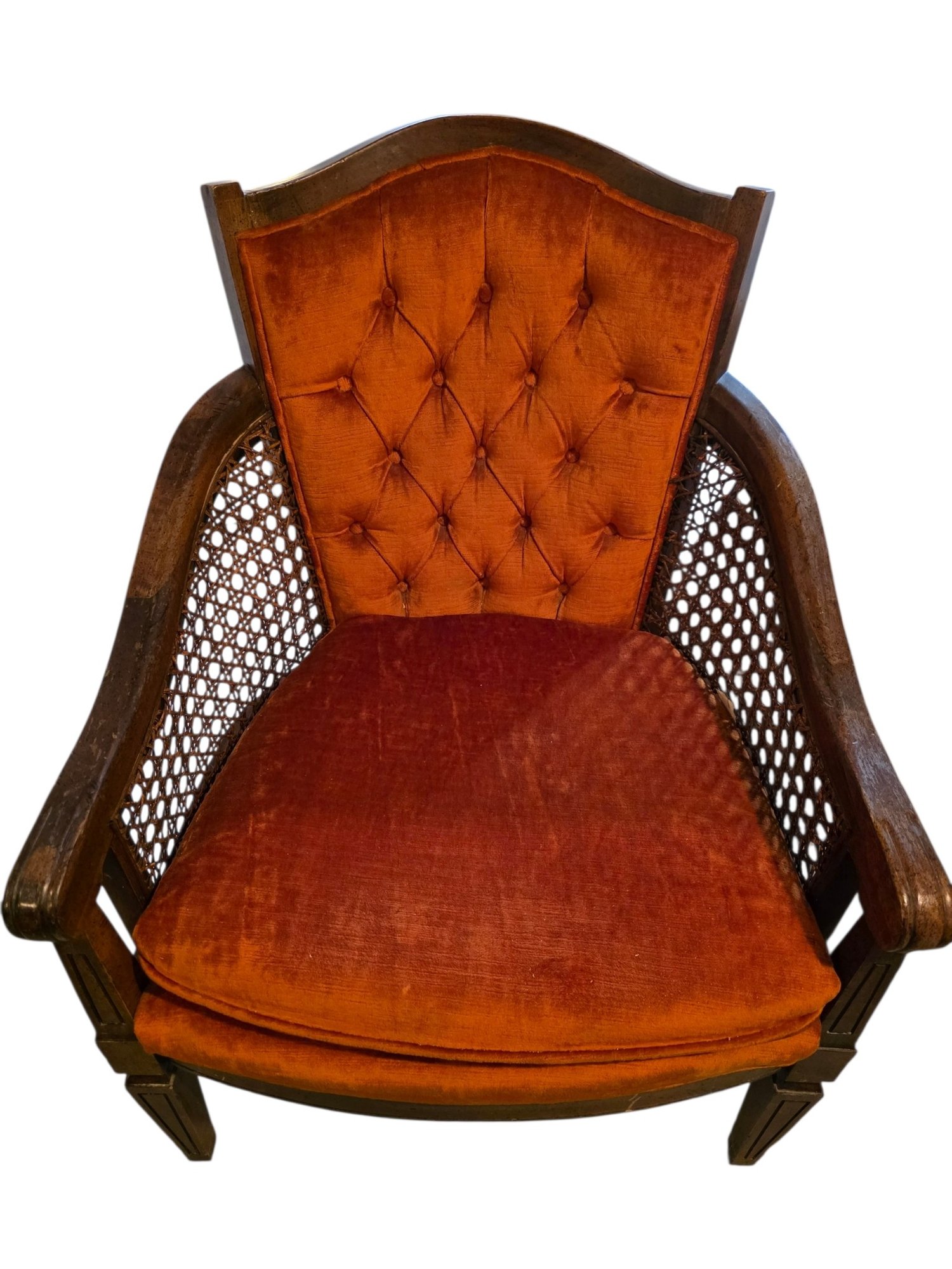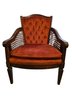 Vintage MC Wood, Velvet and Cane Chair. Hollywood Regency Style.