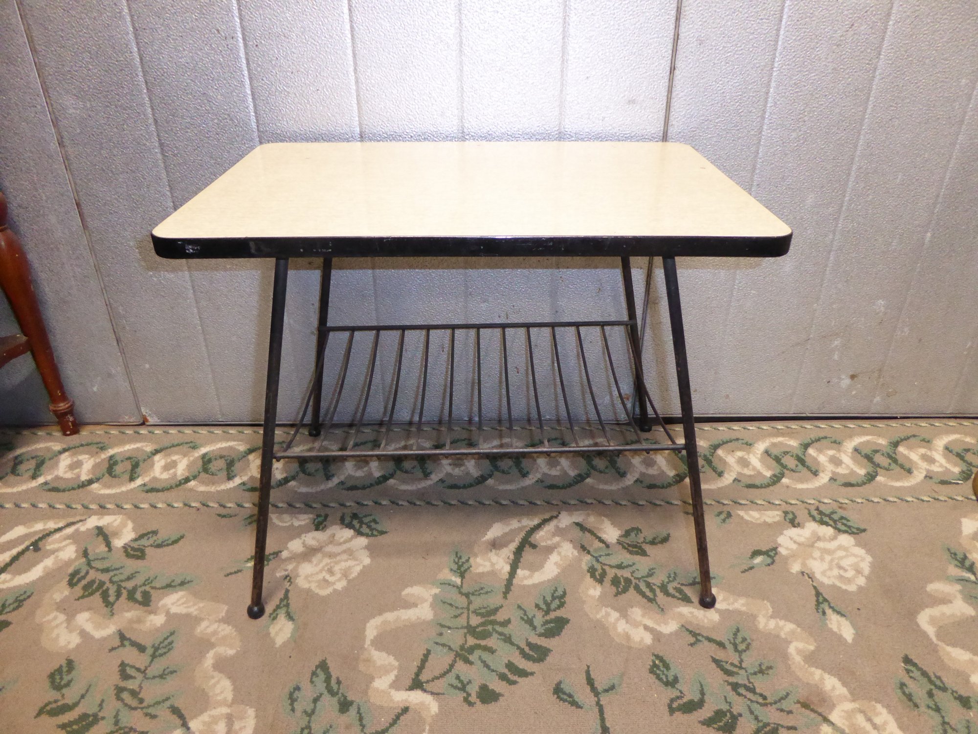 Vintage MCM Atomic Wrought Iron End Table/Magazine Rack