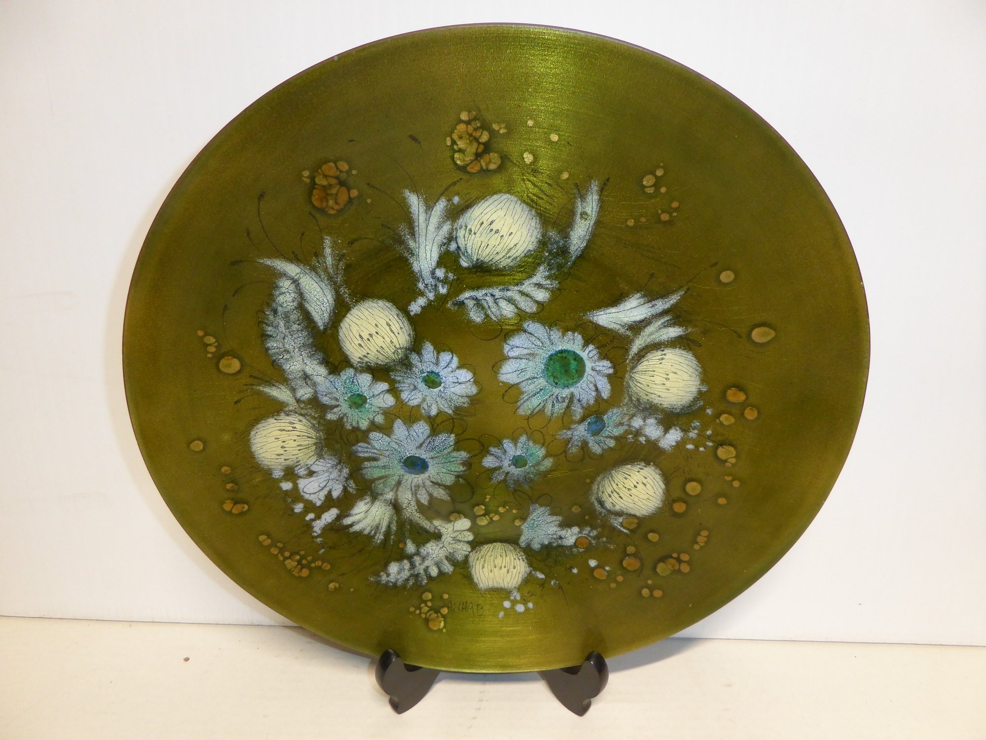 Vintage MCM Enamel On Copper Wall Art - Signed
