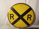 VINTAGE METAL RAILROAD SIGN 36 INCH. PLEASE SEE PHOTOS FOR CONDITION.