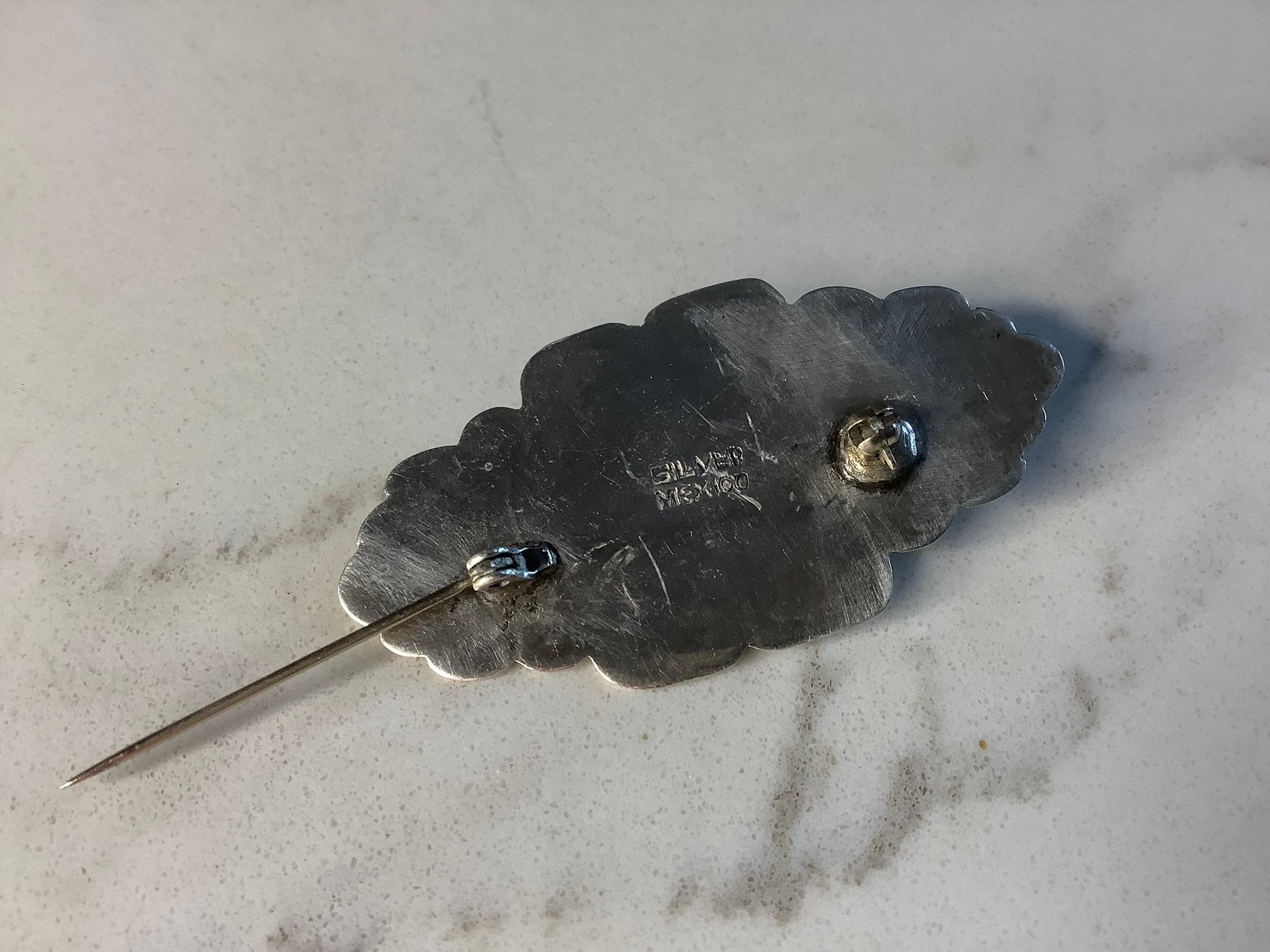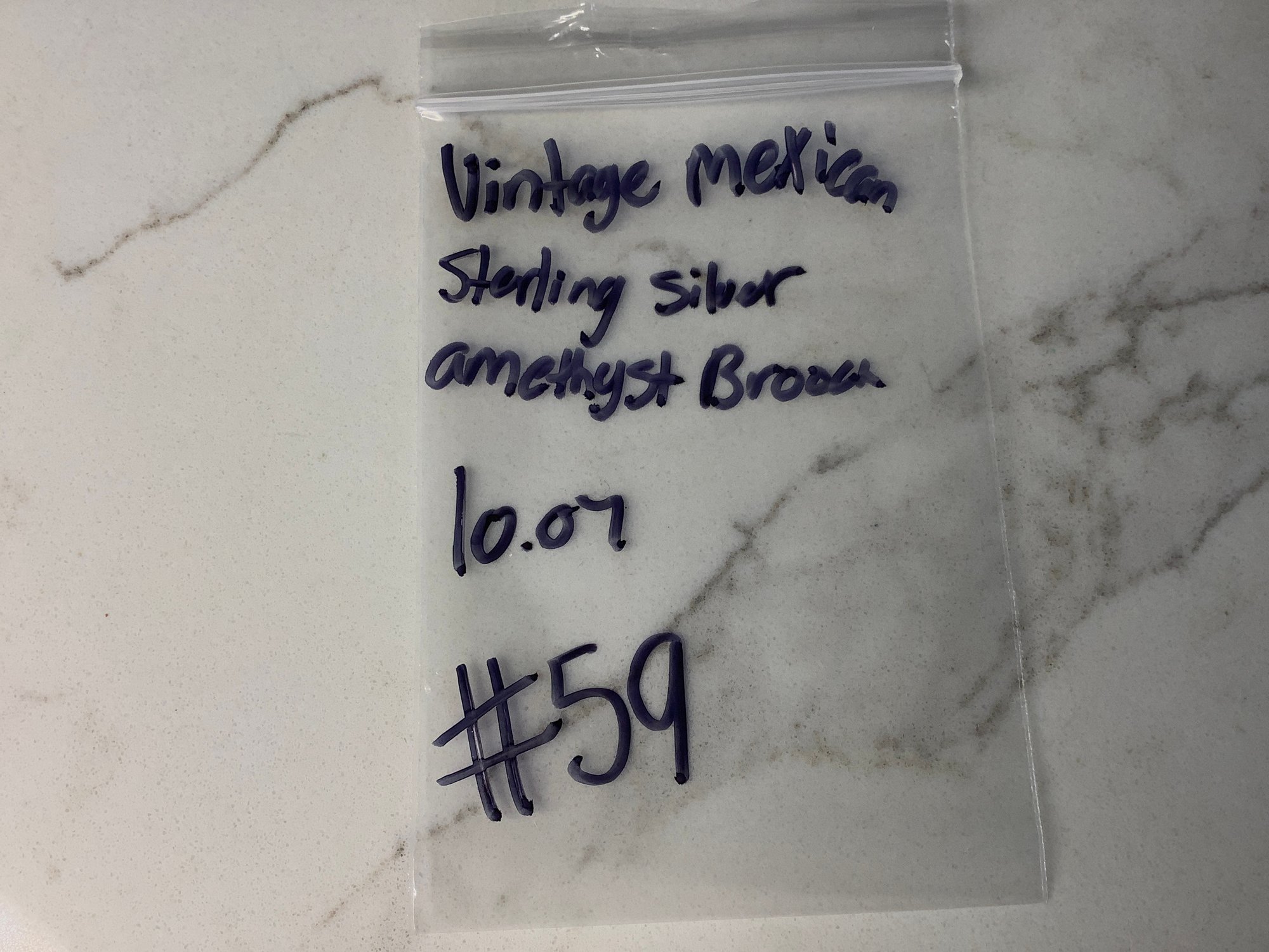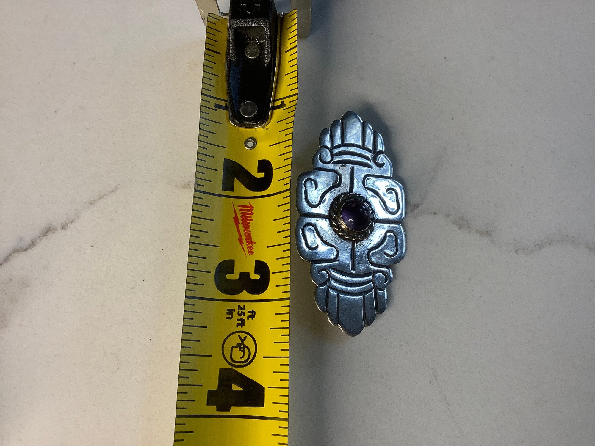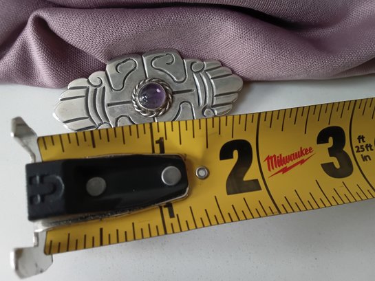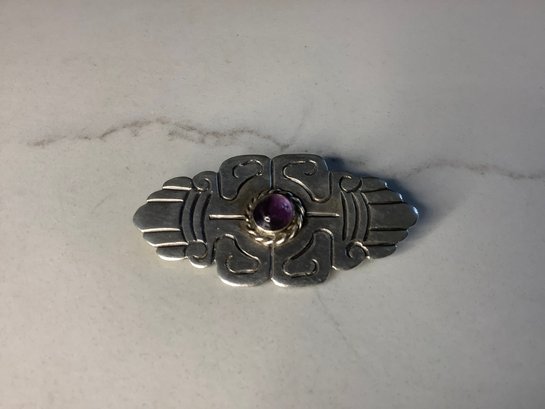 Vintage Mexican Sterling Silver Amethyst Brooch #59