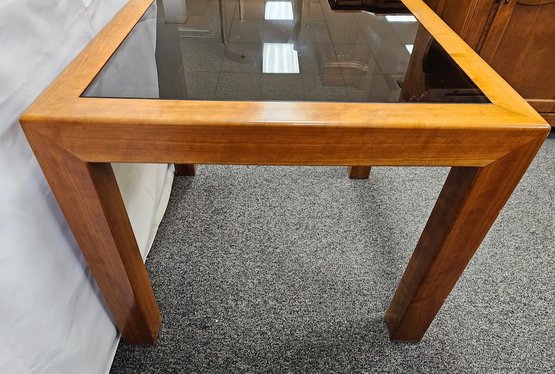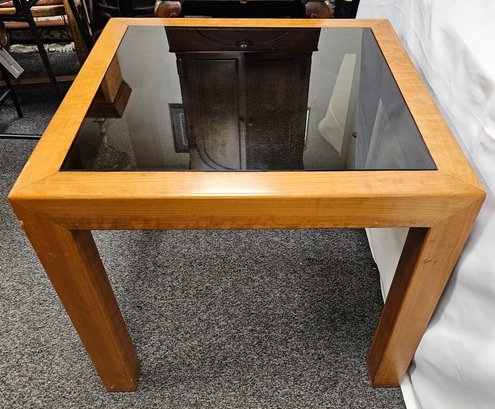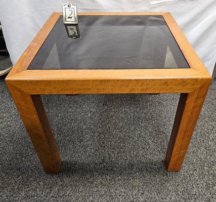 Vintage mid century modern brown Square smokey glass End Table (#2)