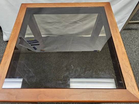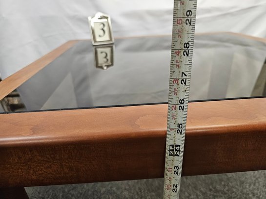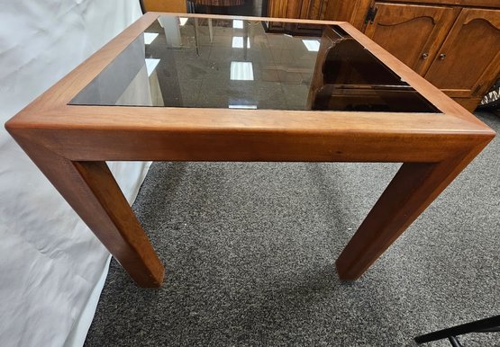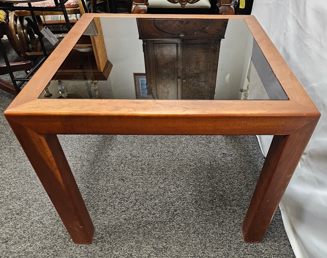 Vintage mid century modern brown Square smokey glass End Table (#3)