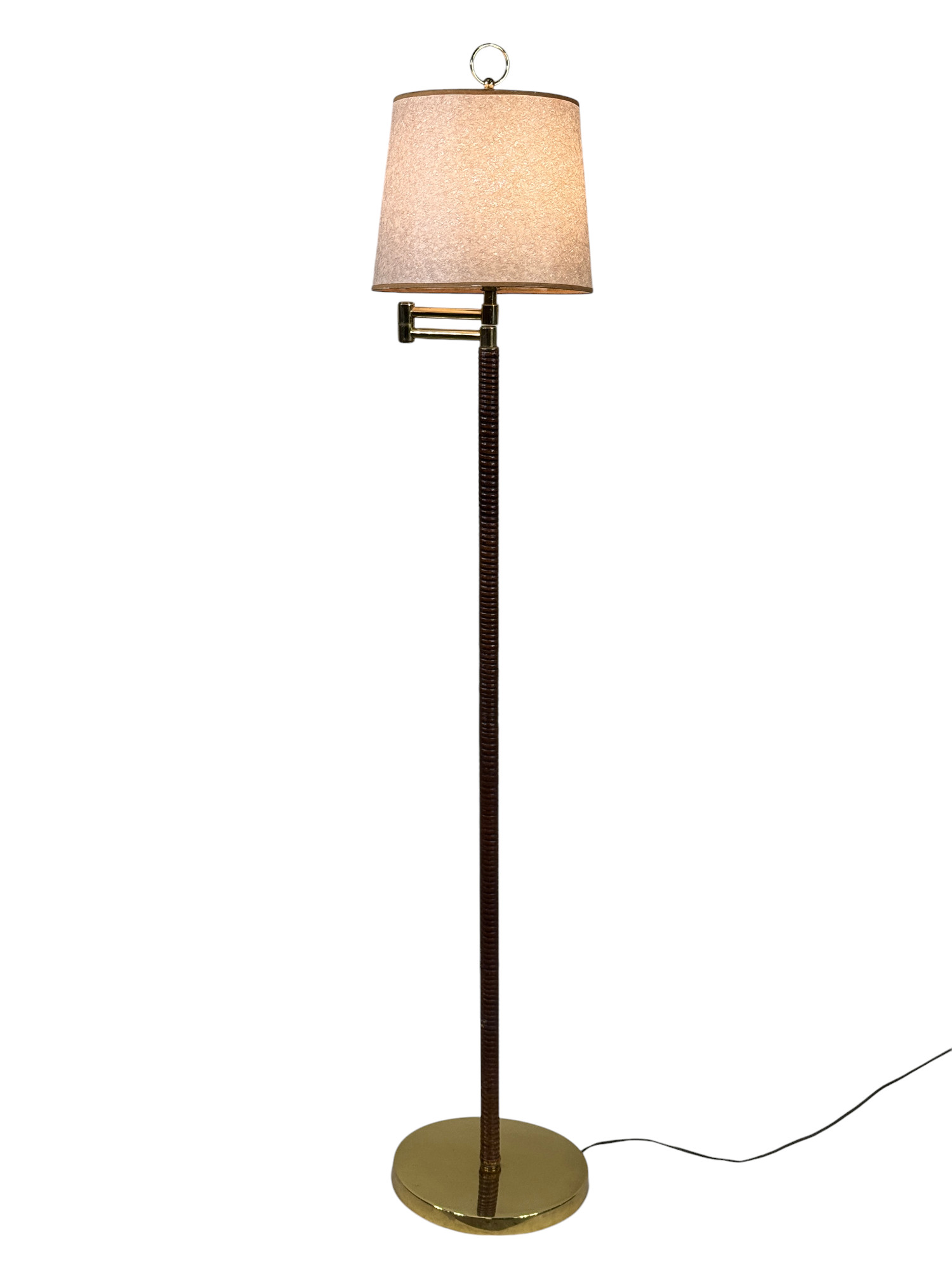 Vintage Mid Century Rattan & Brass Wrapped Column Floor Lamp
