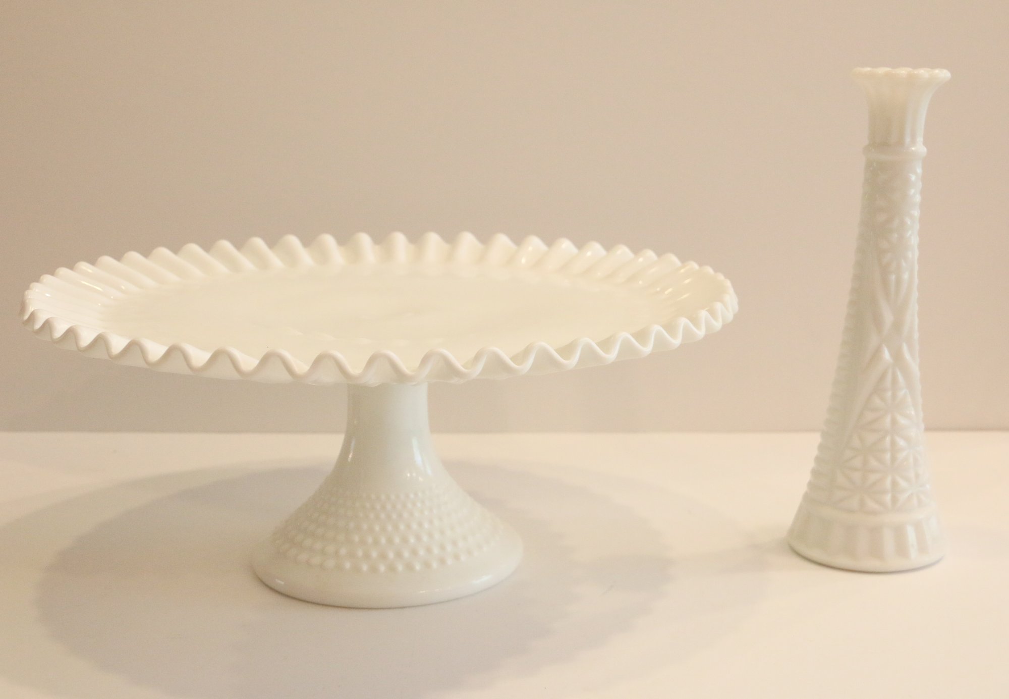 Lot includes Vase 9" Tall & Cake Stand 12.5 x 5 "