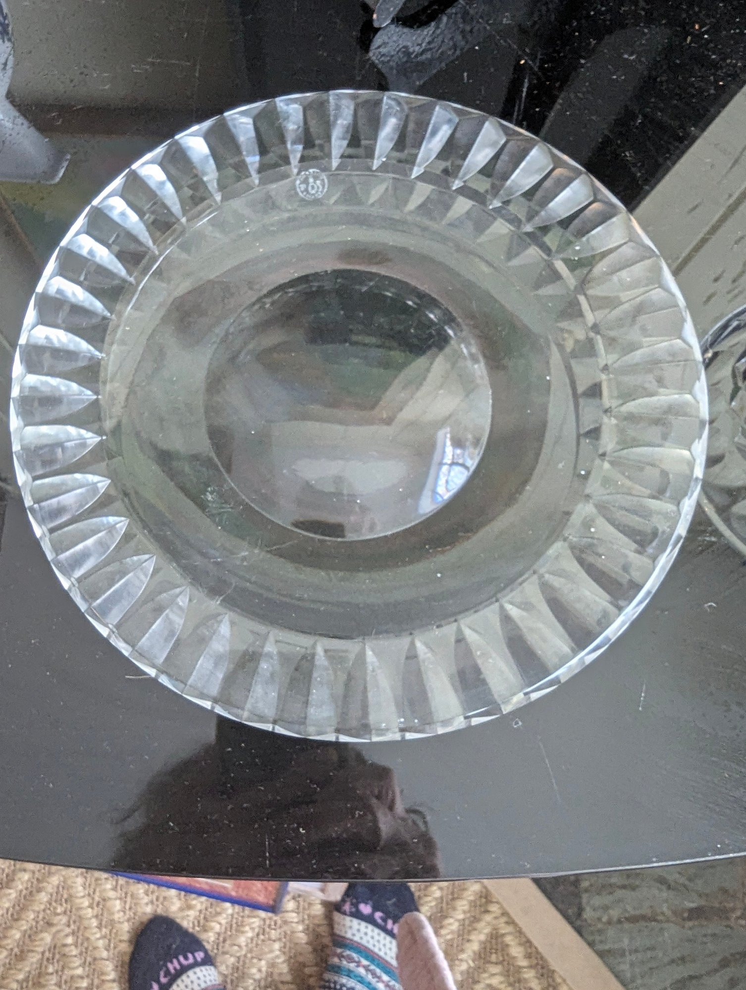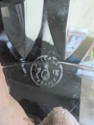 The Underplate (Baccarat): The larger, flatter plate serves as an underplate or "liner." It features a distinctive wide rim with elegant, vertical flute cuts. The circular etched hallmark on the bottom—featuring a wine glass, a decanter, and a goblet—is the iconic signature of Baccarat France, established in 1764.