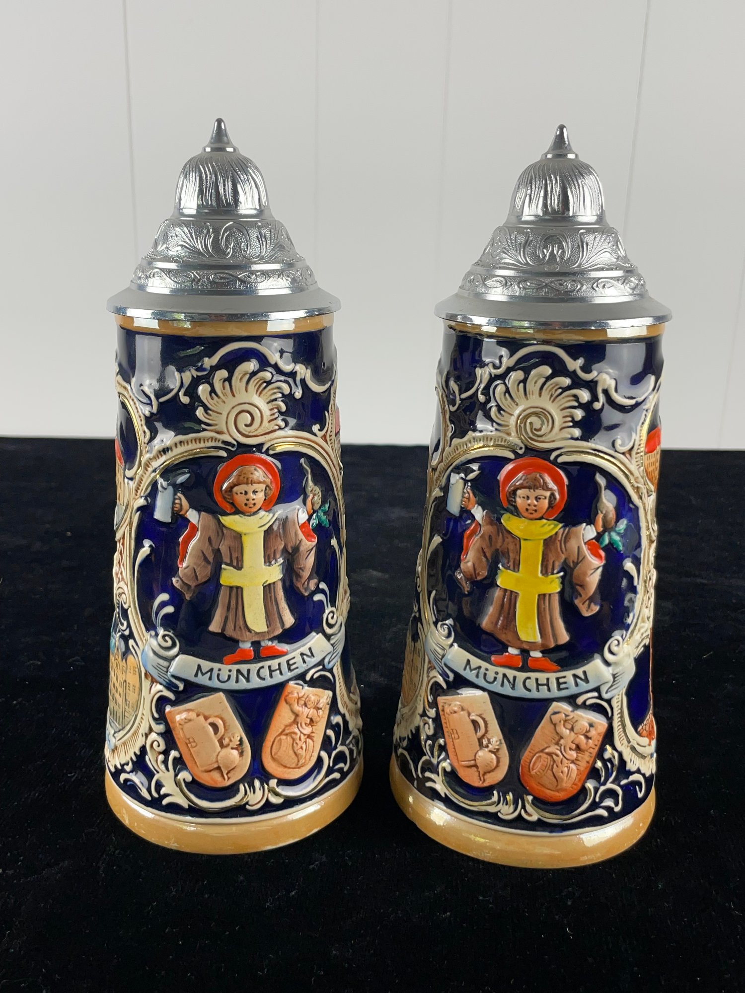 Two piece beer stein set. Silver colored top. No damages seen in images. See photos for more conditions and sizing.