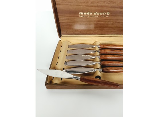 Still in original box and appear never used . Great Danish design with solid teak handles.
