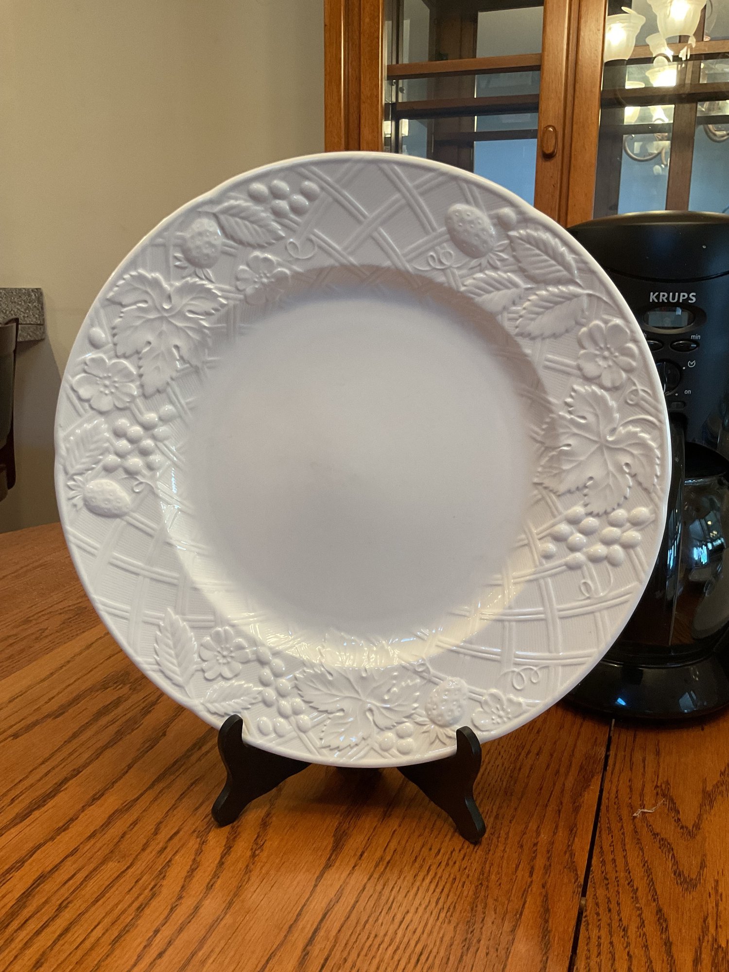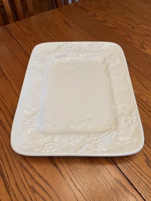 Mikasa "English Countryside" Serving Plate: Large white embossed platter (12 frac{1}{2}" diameter), microwave and dishwasher safe.