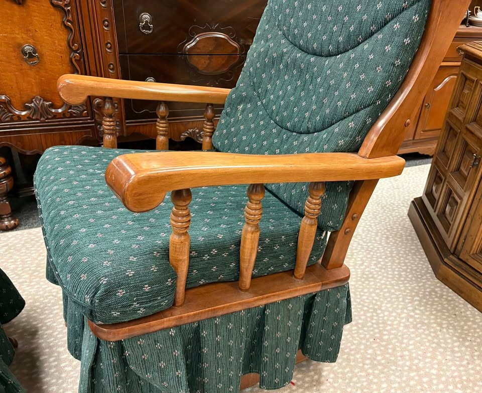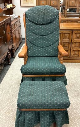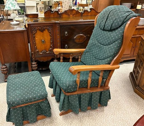 Vintage Newport Rocker Glider with ottoman. 44" back H 26" arm H 19" seat H 24" depth 19" seat depth Ottoman: 16" H 21.5" x 16"