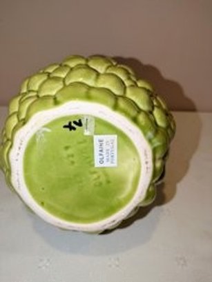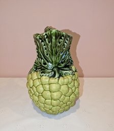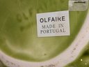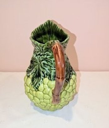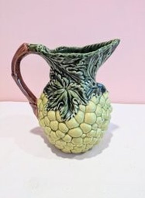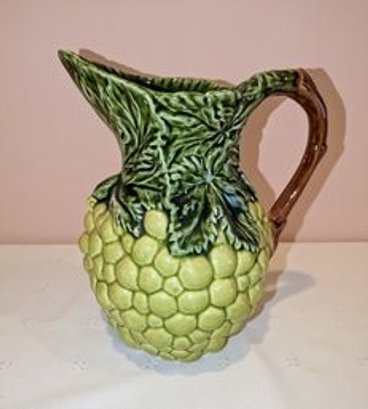 Vintage Olfaire Green Grape Pitcher, Vibrant Olfaire Majolica styled 58 oz pitcher, with sculpted grapes, leaves, and a vine handle. This handmade Portuguese ceramic is a beautiful piece for display, a bouquet, or your next sangria party! Excellent Vintage Condition. Please see all photos as part of the description and condition. 9.5"H x 8.25" (Handle to Spout)