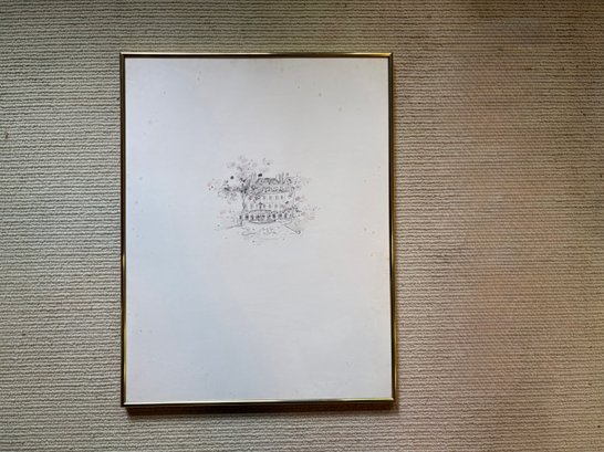 Vintage framed pen drawing of Place de Vosges, Paris 1984.
