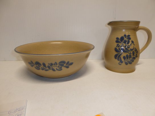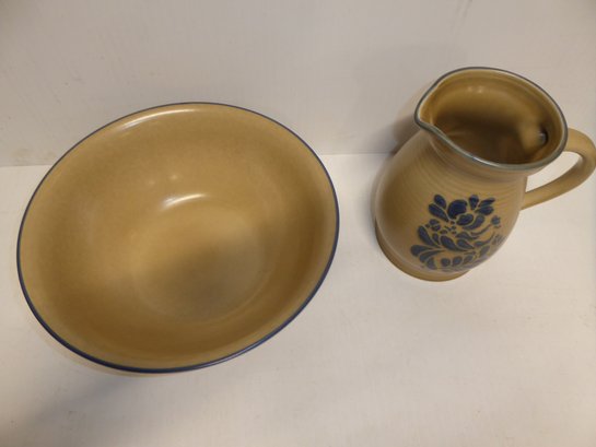 Vintage Pfaltzgraff Stoneware Pitcher And Mixing Bowl