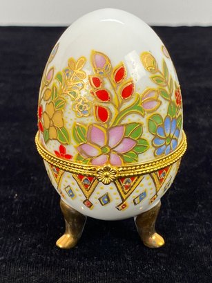 Vintage Porcelain Painted Floral Egg Trinket Box