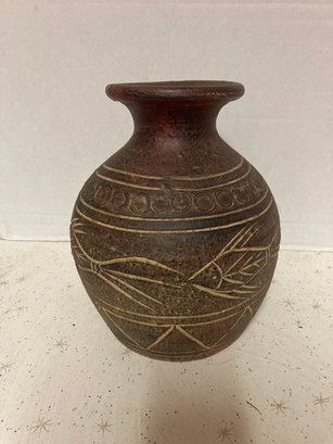 nice handmade vase. does have a spot on the side with an imperfection , please view photo , if displayed correctly not visible. I don't think it detracts from the beauty of the vase, View photos and see if this unique vase works for your needs