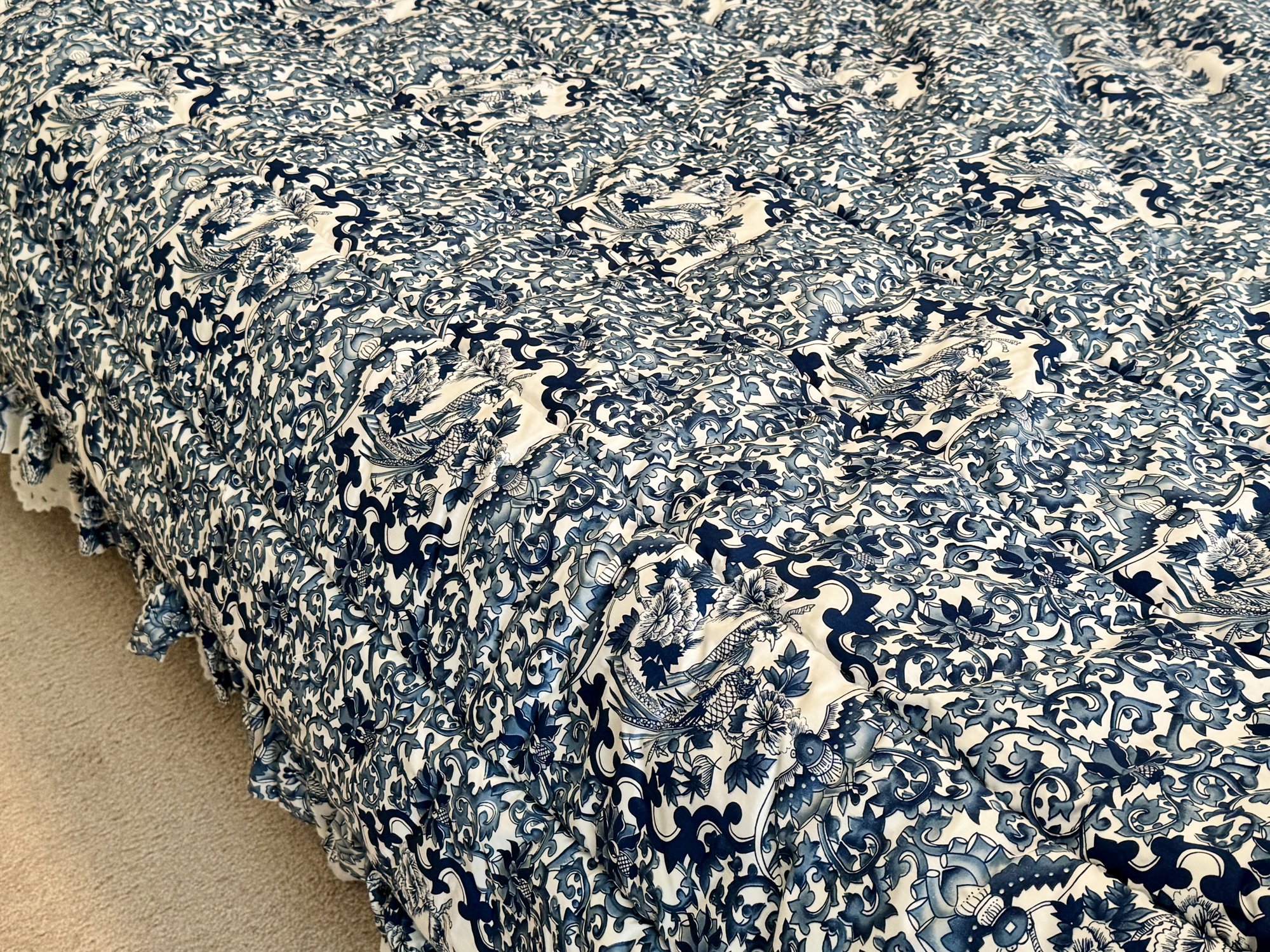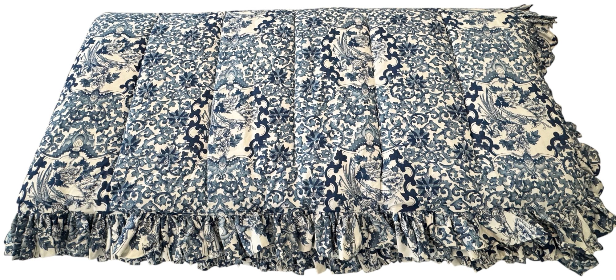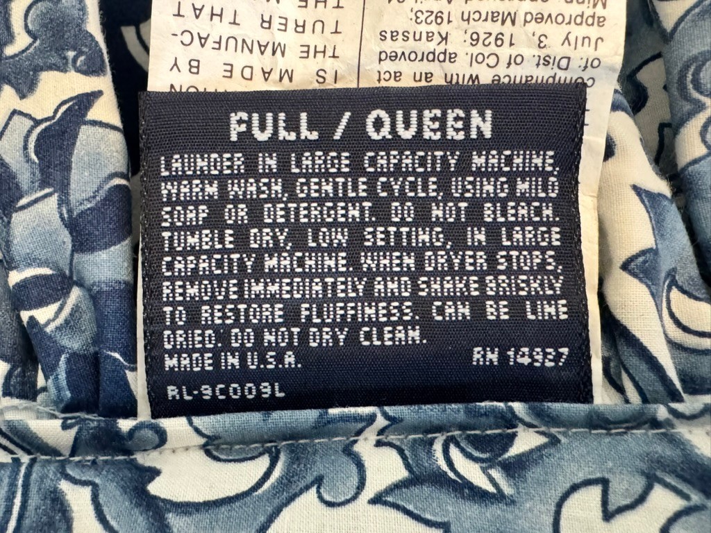 Vintage Ralph Lauren cotton comforter with ruffled edge in pristine condition. Made in the US.