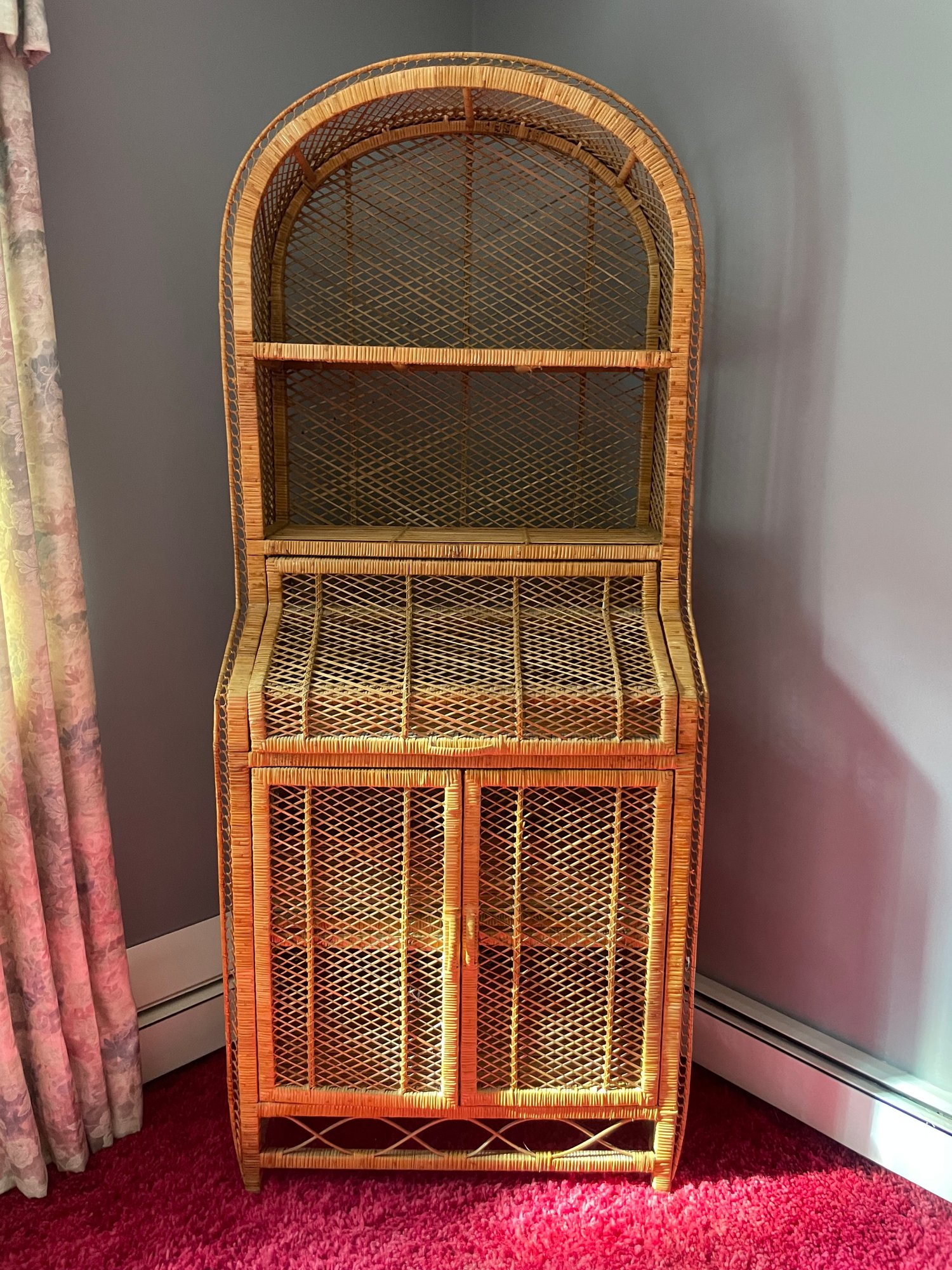 Vintage Rattan Cabinet Wicker Hutch