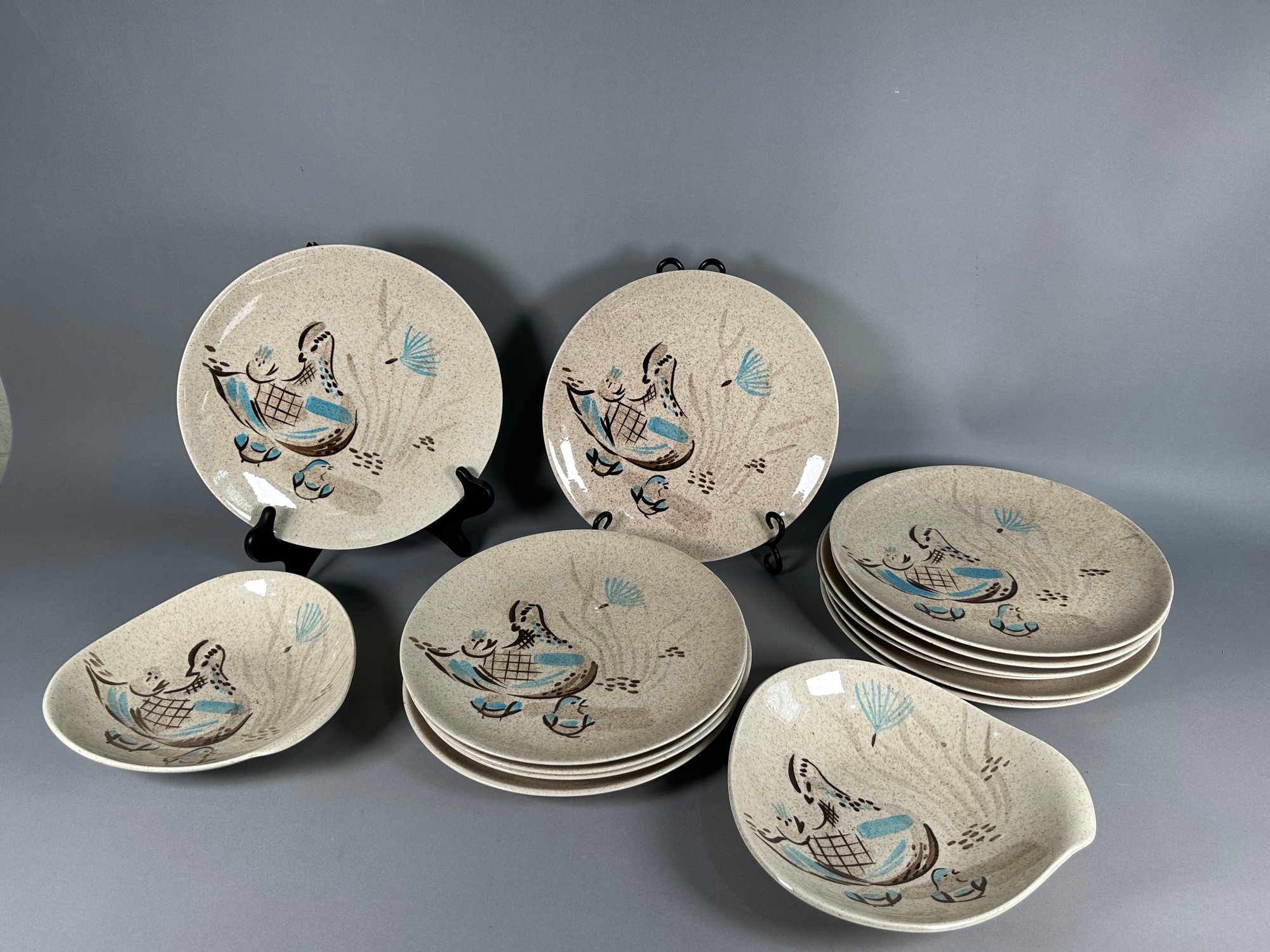 A fabulous collection of Vintage Red Wing Pottery Bob White Quail Pattern Dishes