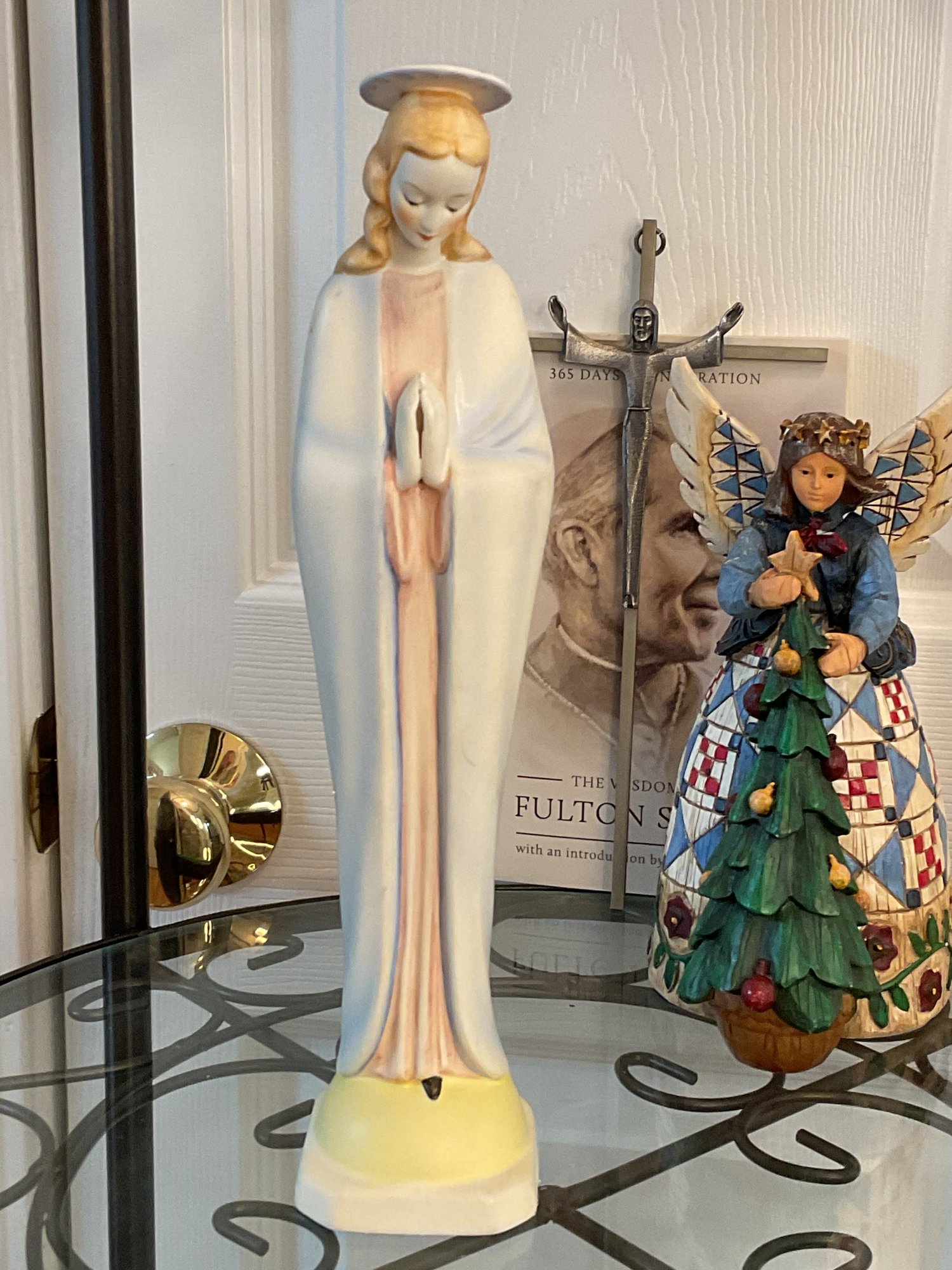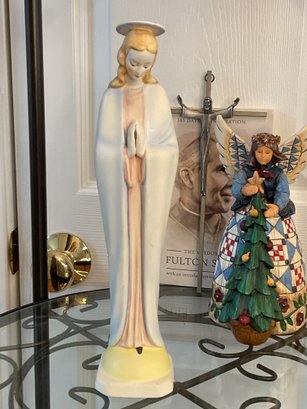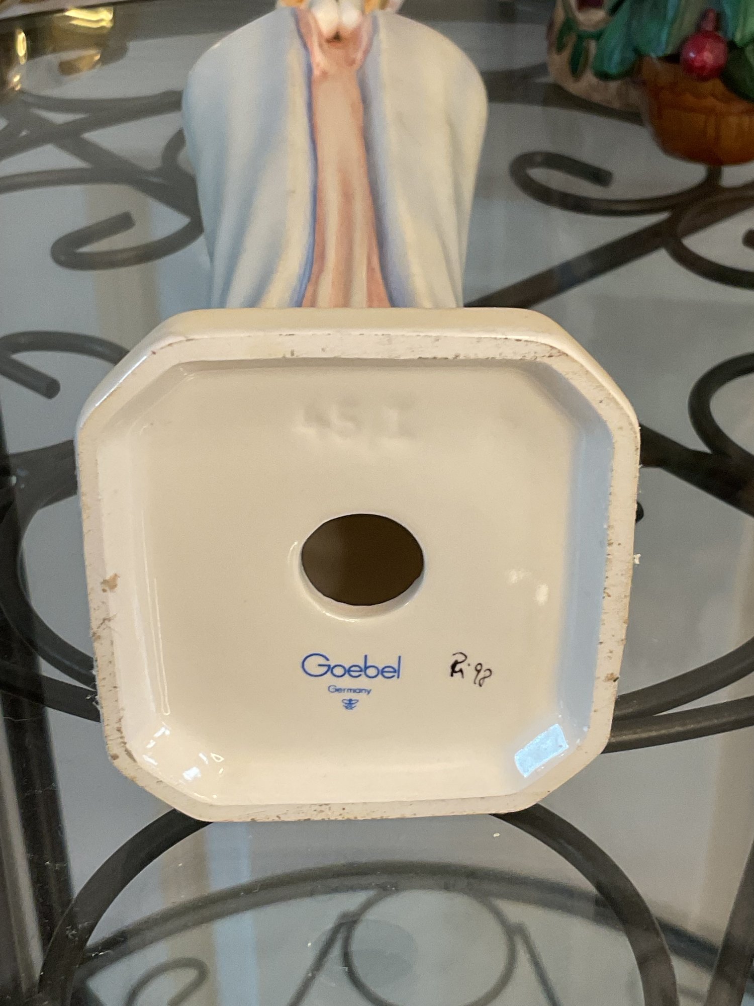 Goebel "Virgin Mary" Figurine: A large, elegant porcelain piece marked "Goebel Germany." Stands approximately 12" tall.