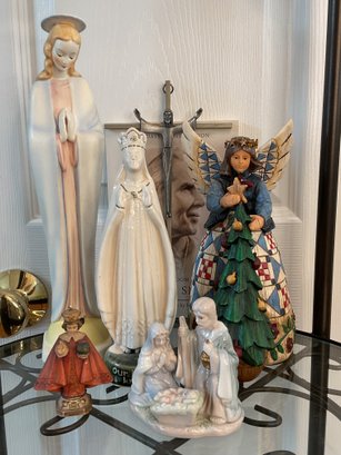 An impressive 7-piece collection of religious figurines and spiritual items, featuring notable makers and international craftsmanship. This lot includes: