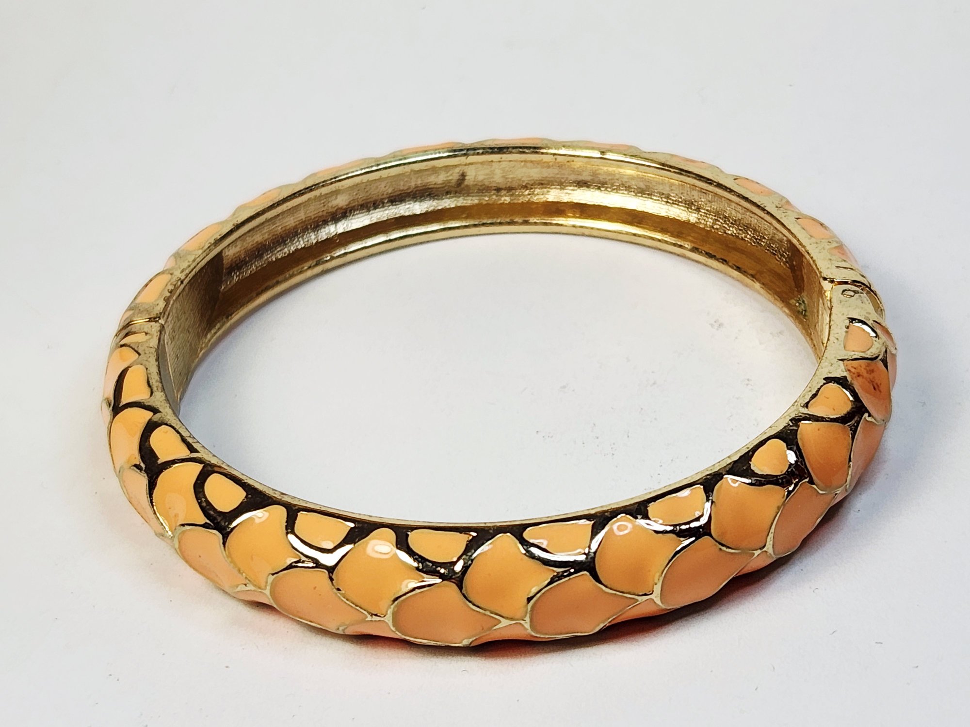 Vintage retro Gold Tone textured Hinged Bangle Bracelet