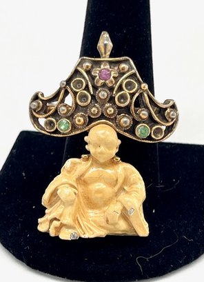 16g, missing stones, 1.75” x 1.25” enamel chipped