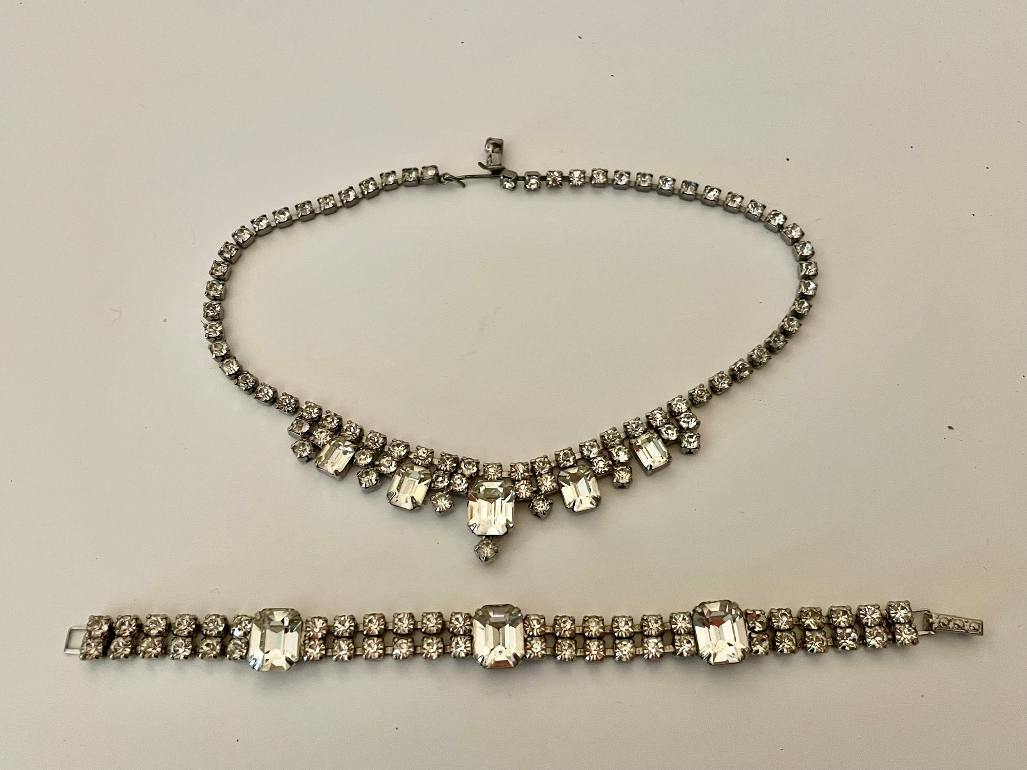 Two great rhinestone pieces - fun to wear together or separately. The bracelet is marked La Rel and is 7" long and the necklace is about 14" long. Both are in good condition.