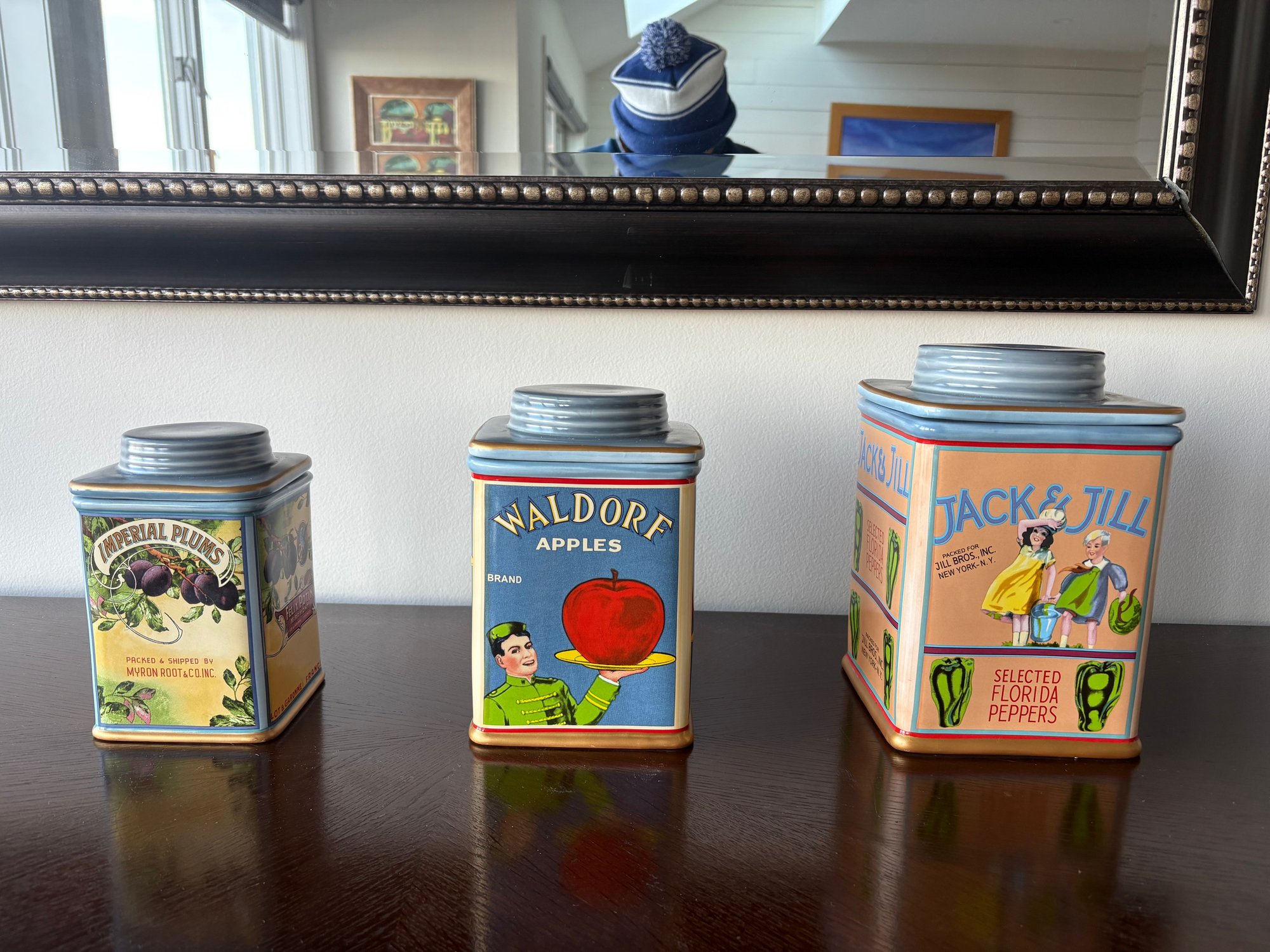 1 Vintage Sakura Vintage Labels Stoneware Canisters set