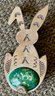 Fantastic vintage sterling silver bunny brooch by Native American/ Southwestern artist Carolyn Pollack [Relios]. It has a jelly belly with crushed turquoise and traditional incised decoration. Very good condition.