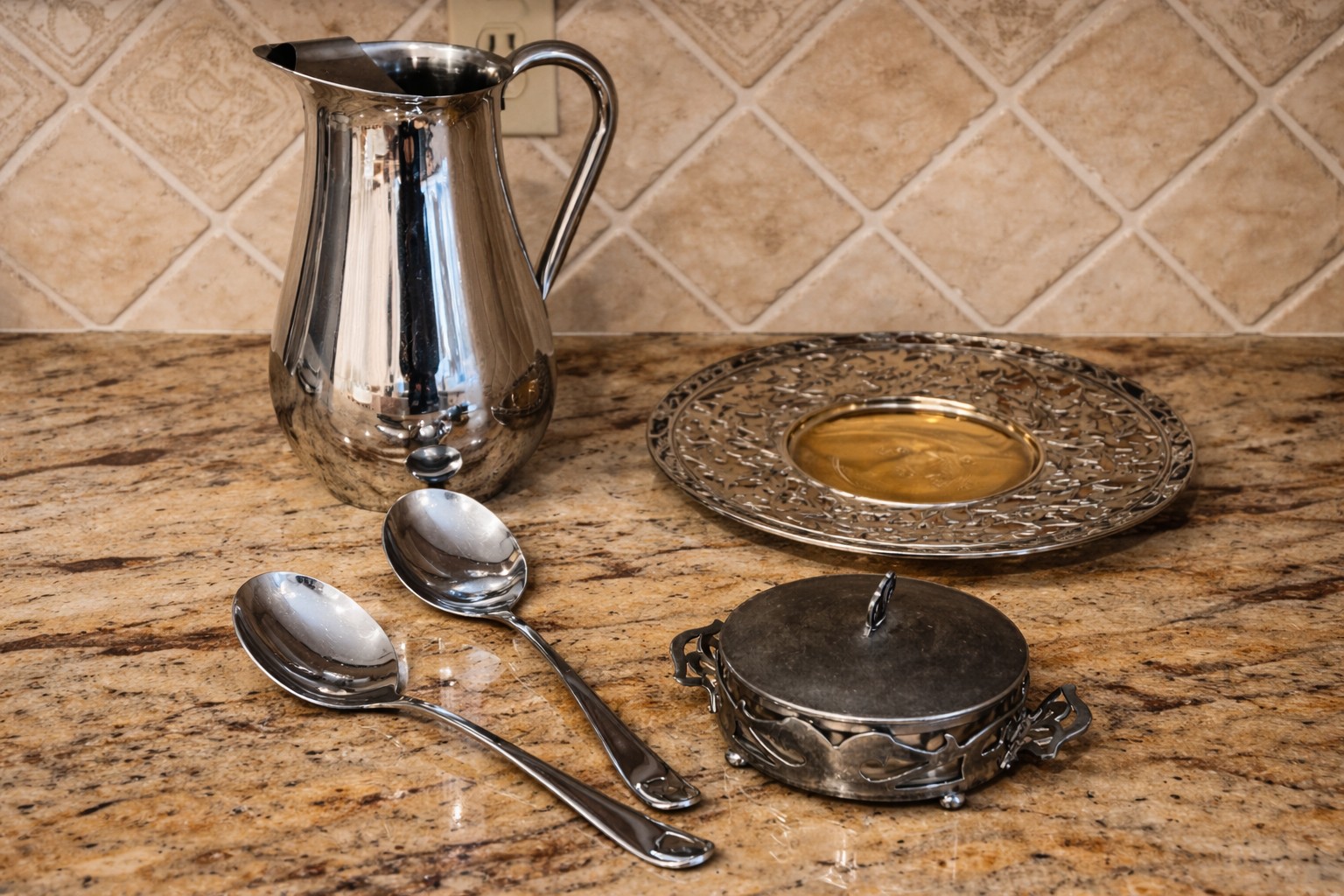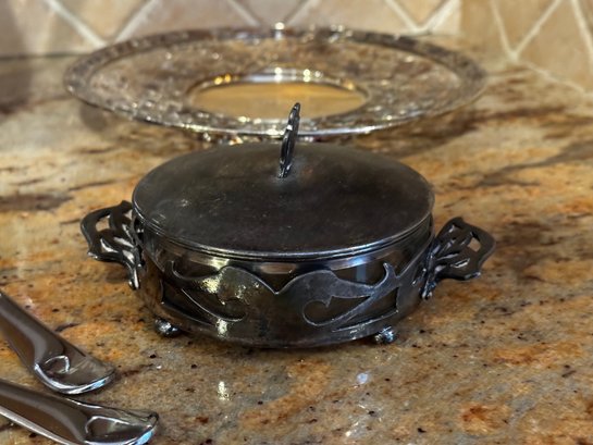 Collectible silver plate pieces - two with interesting openwork designs. Patina is expected.