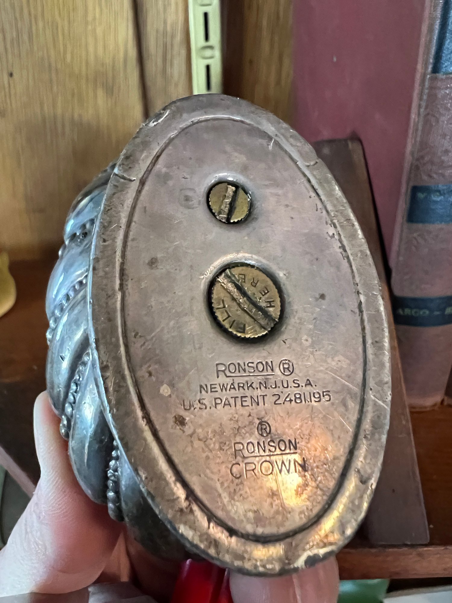 Wonderful 1930s-1940s silverplate table lighter by Ronson Crown.