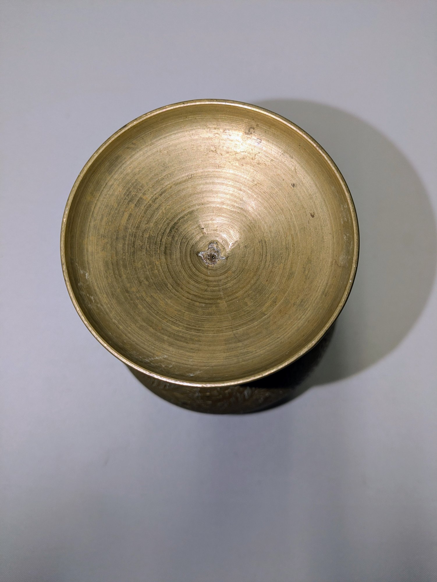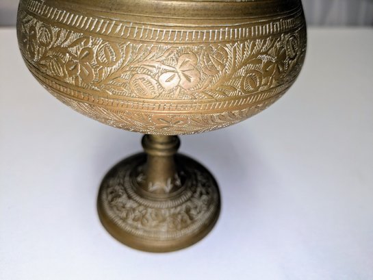 Vintage Solid Brass Intricate Detailed Wine Goblet. Stunning detail and intricate design. Some marks and normal wear are consistent with age and brass. Overall Excellent/Very Good Condition. 6.5" H x 5" Diam